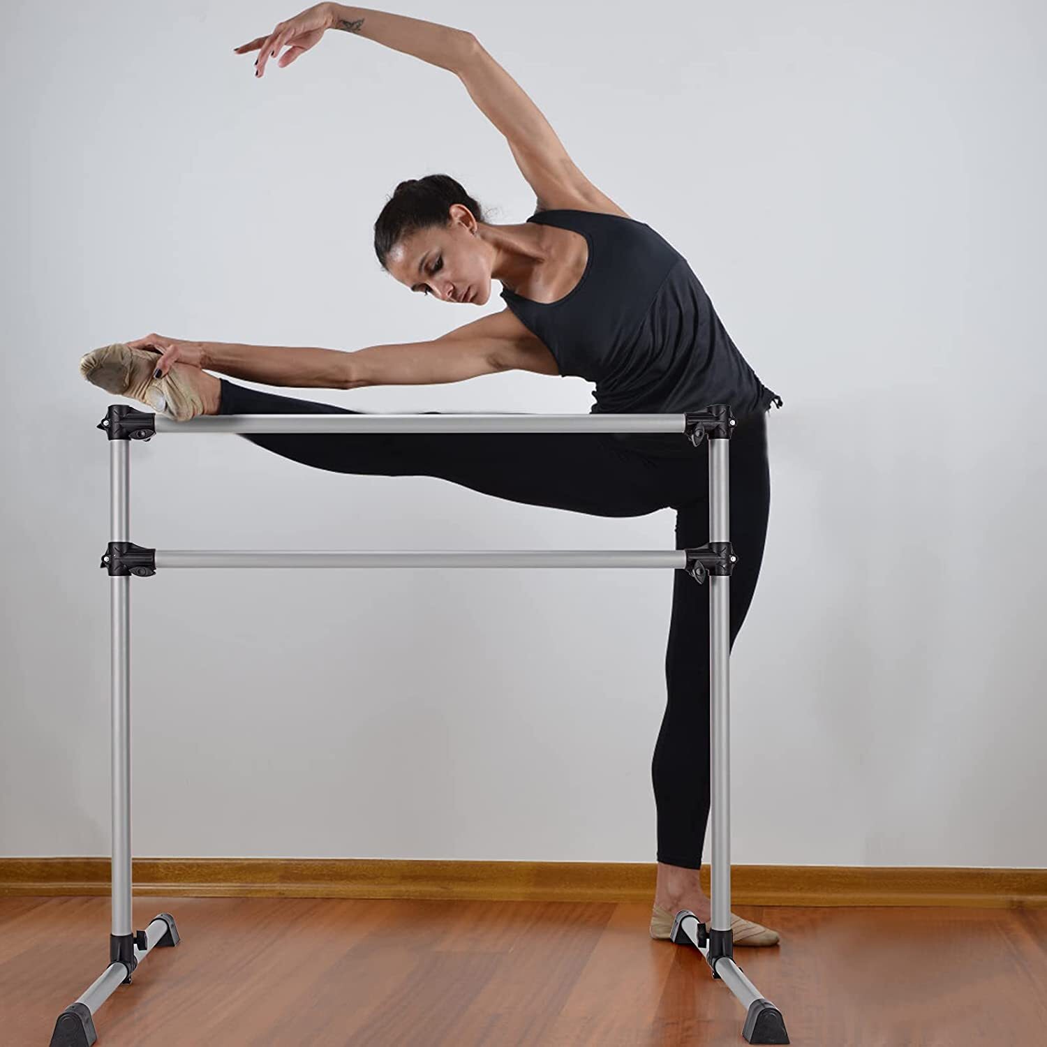 Perfekt für Tanz, Yoga und Stretching zu Hause! Diese freistehende Ballettstange von Cannons UK ist super praktisch. Mit 1,1 Meter Länge und verstellbarer Höhe von 85-105 cm passt sie für Kinder und Erwachsene gleichermaßen. Das clevere Clip-Lock-System macht die Höhenverstellung ganz einfach, und die rutschfesten Gummifüße sorgen für sicheren Stand auf jedem Boden. Schnell auf- und abgebaut - ideal wenn mal wenig Platz ist. Ob für Ballett-Übungen, Dehnübungen oder Fitness-Training - diese Stange unterstützt dich bei Balance, Flexibilität und Kraftaufbau. Ein vielseitiges Sportgerät für jedes Zuhause!