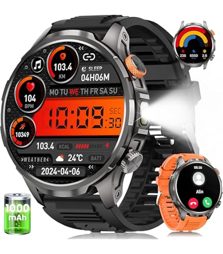 Diese Smartwatch ist ein echter Überlebenskünstler! Mit MIL-STD-810H Militärzertifikat hält sie extremsten Bedingungen stand: Stürze aus 1,5m Höhe, Salzsprühnebel, Temperaturen von -30°C bis 70°C und IP68 Wasserdichtigkeit.