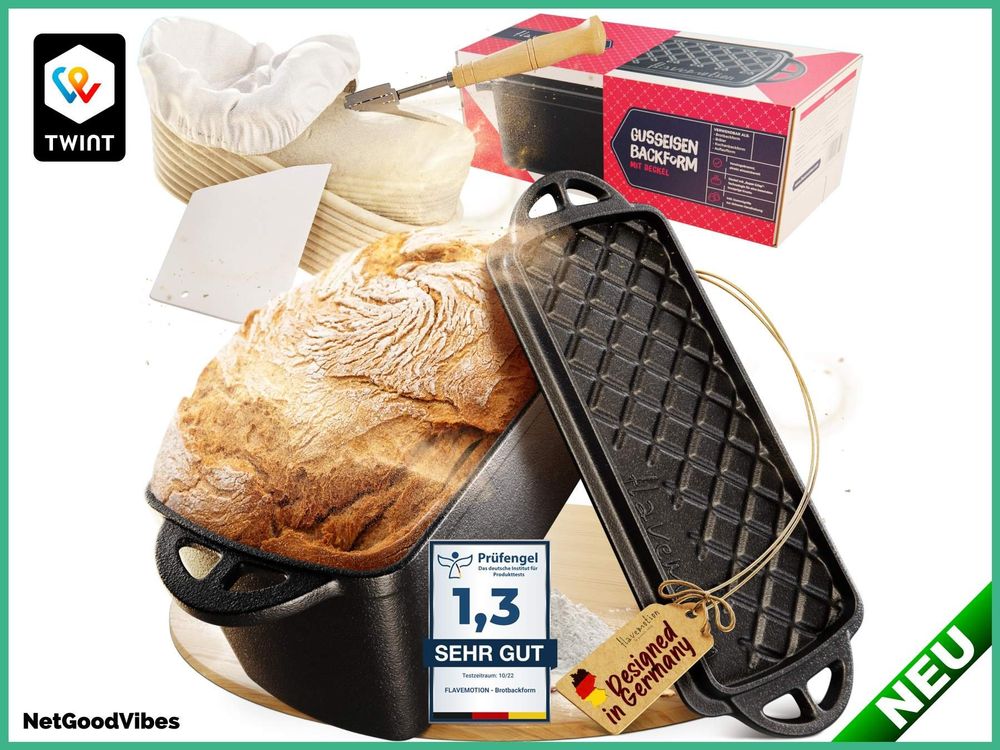 Bäckermeister gesucht! Dieser vielseitige Gusseisen-Brotbacktopf (23x14x13 cm, 2,3 QT) backt perfektes Sauerteigbrot und vieles mehr. Der Deckel wird zur Grillplatte - brate Fleisch oder Spiegeleier während das Brot backt! Die Antihaft-Beschichtung mit Pflanzenöl und beiliegende Silikon-Backmatte garantieren perfektes Lösen. Robuste Gusseisen-Konstruktion mit idealer Wärmespeicherung für knusprige Kruste und saftige Krume. Sicherheitsgriffe und Druckentlastungsöffnungen für sicheres Handling. Für Backofen, Herd, Grill sogar Camping geeignet! Einfache Reinigung, einfache Pflege - einfach perfektes Brot backen! Inklusive Kundenservice-Garantie für sorgenfreies Backvergnügen.