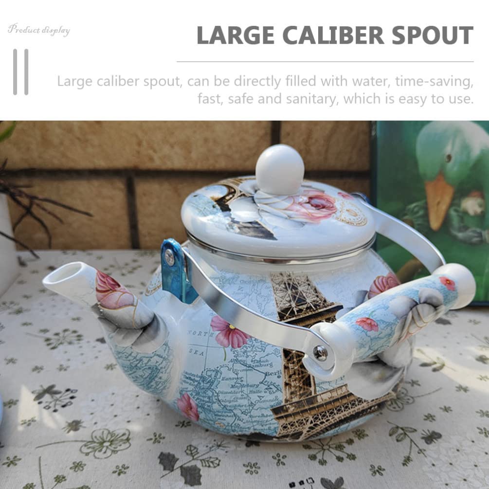 Weiße Emaille Teekanne 2,5 Liter - Vintage Blumenmuster Für Herd & Induktion