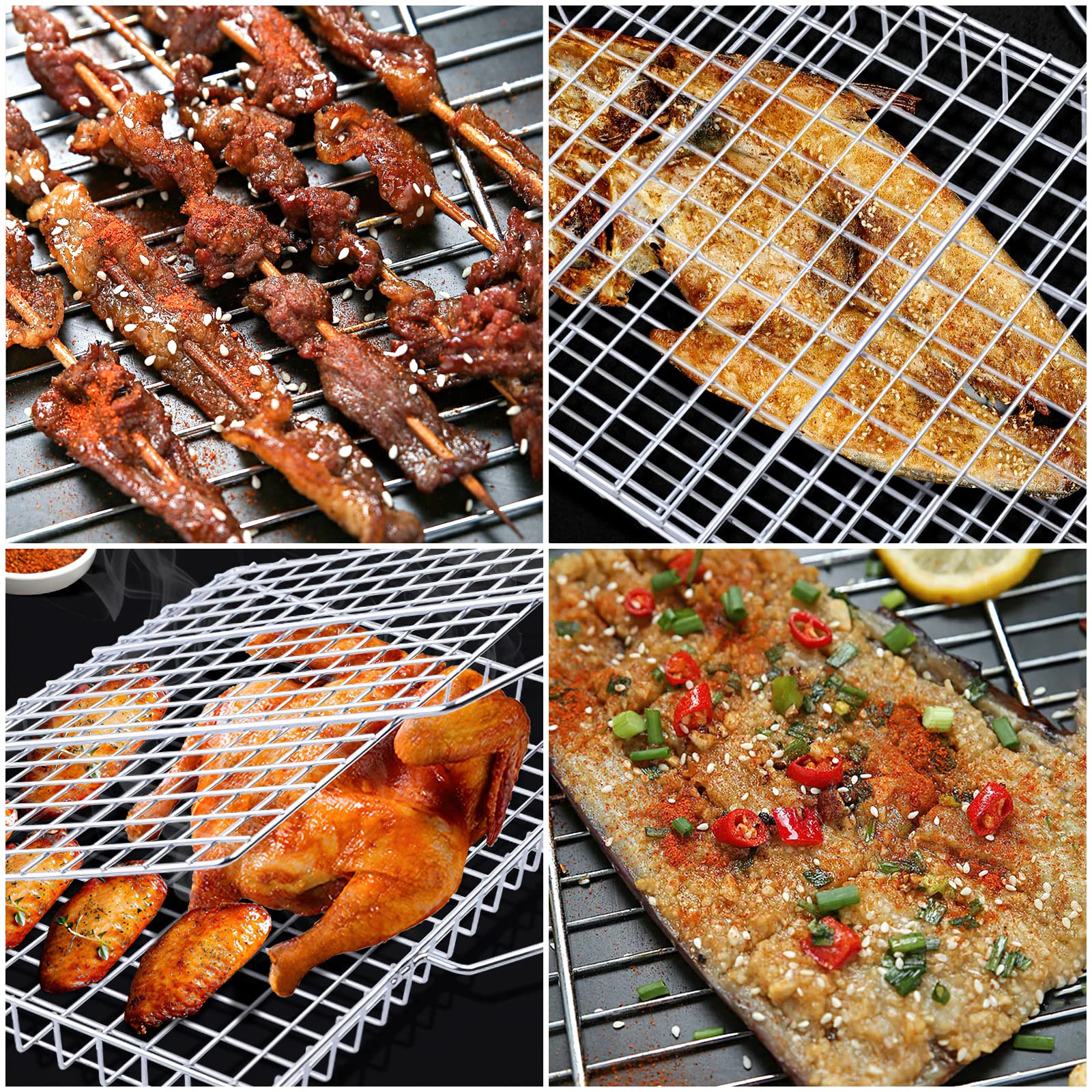 Edelstahl Grillkorb Mit 2 Bürsten & Abnehmbarem Griff - 32cm Fischbräter Für Grillpartys