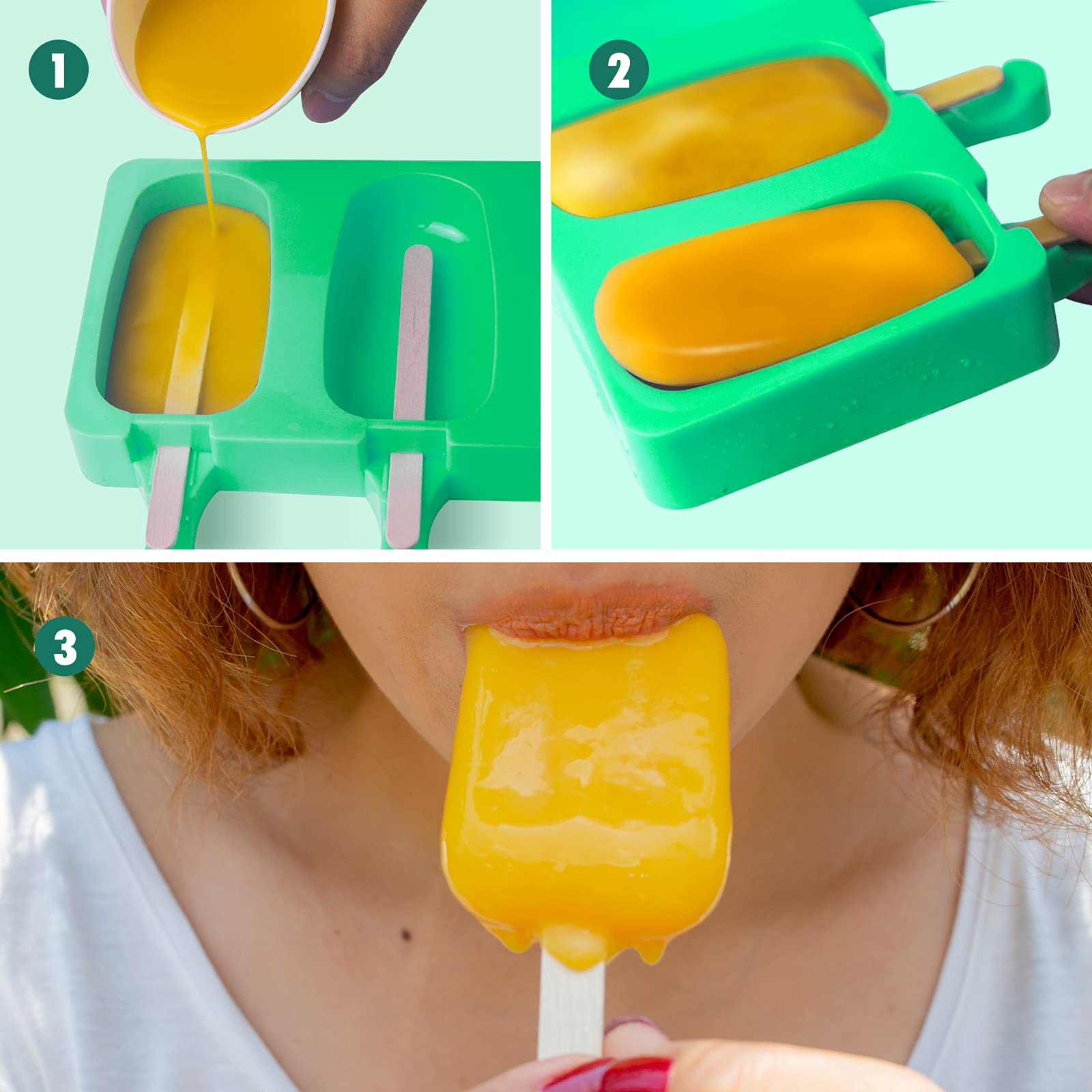 2 Eisformen Silikon Mit 100 Holzstielen - Popsicle Molds Für Selbstgemachtes Eis | Spülmaschinenfest