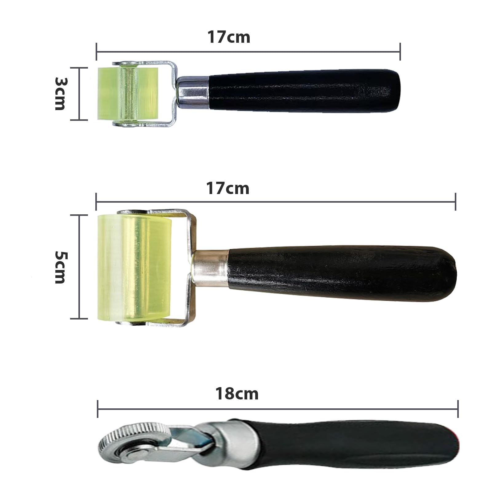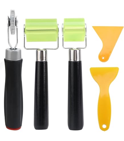 DIY-Fans aufgepasst! Dieses APOMOONS Andrückrolle-Set ist dein neuer bester Helfer bei Renovierungsarbeiten. Mit 3 verschiedenen Rollen in 3cm, 5cm und 6mm Breite bist du für jede Aufgabe gewappnet. Aus hochwertigem Silikon das glatt läuft und keine Kratzer hinterlässt. Perfekt für Tapeten, Schalldämmmatten im Auto, Lederarbeiten oder beim Verkleben von Materialien. Die ergonomischen Holzgriffe liegen super in der Hand und ermüden nicht, selbst bei längeren Arbeiten. Mit den 2 beiliegenden Handschuhen bleibst du sauber. Die Zwei-Wege-Lager sorgen für smoothies Gleiten und verhindern Luftblasen. Egal ob Heimwerker oder Profi - dieses Set macht deine Arbeiten einfacher und professioneller. Einfach auspacken und loslegen - deine nächsten Renovierungsprojekte warten!