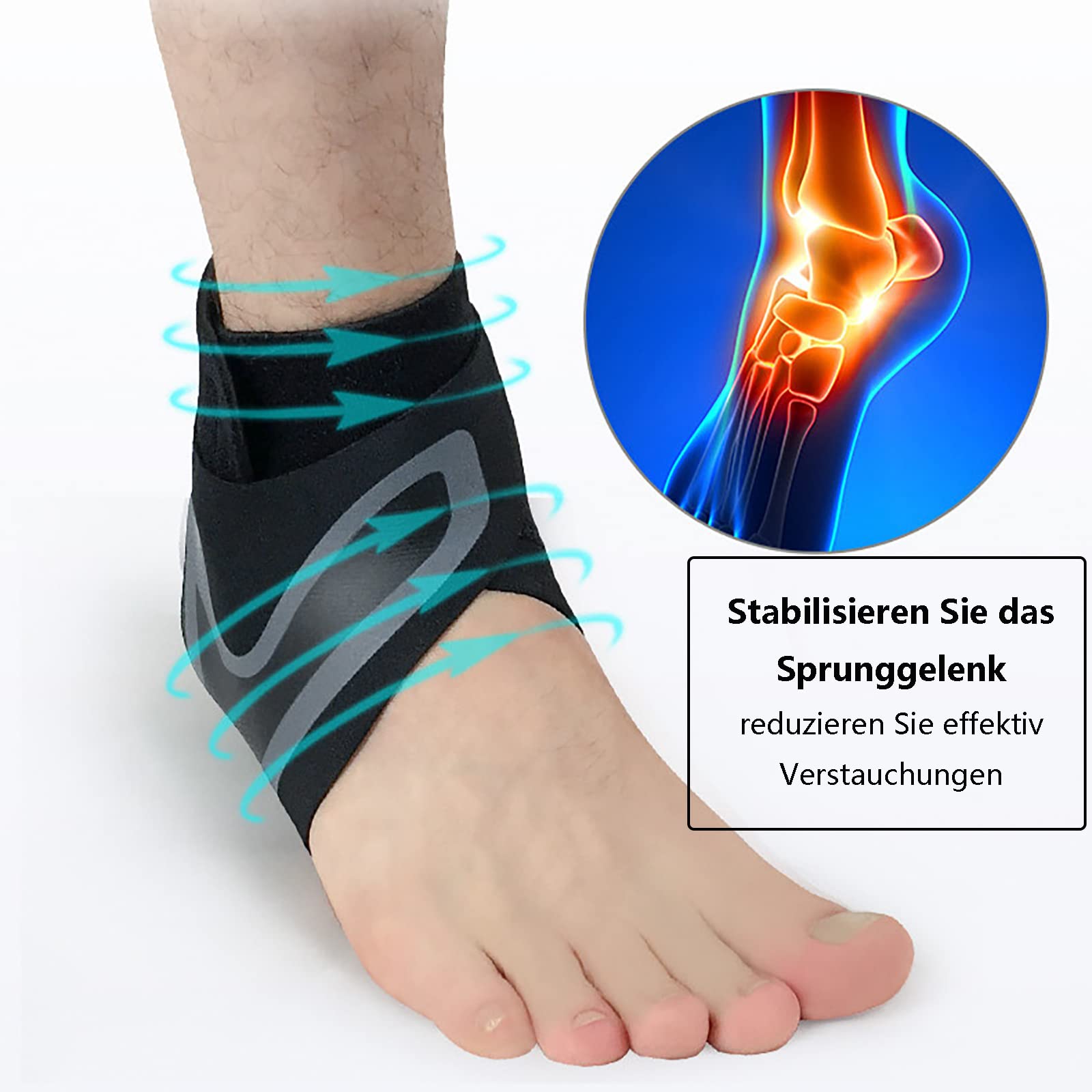 Bei Schmerzen im Fußbereich? Diese Knöchelbandagen geben dir den Support, den du brauchst! Die 360-Grad-Kompressionstechnologie stabilisiert dein Sprunggelenk, ohne dich einzuengen. Perfekt bei Verstauchungen, Fersensporn oder Achillessehnen-Beschwerden. Das atmungsaktive Material ist angenehm zu tragen und passt sich deiner Fußform perfekt an. Du kannst die Bandagen unter normalen Socken tragen - niemand merkt was! Ob beim Sport (Laufen, Basketball, Fitness) oder im Alltag - deine Knöchel sind bestens geschützt. Die progressive Druckverteilung fördert die Durchblutung und hilft bei der Regeneration. Ein Must-Have für aktive Menschen und alle, die ihre Füße etwas verwöhnen wollen!