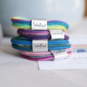 Für den großen Tag der Einschulung! Dieses Set mit 2 Armbändern ist total niedlich mit den Herz- und Hohlherz-Anhängern - symbolisiert, dass man zusammengehört, auch wenn man mal getrennt ist. Die Armbänder sind aus weichem Nylon und durch das verstellbare Design passen sie von 16,5 bis 28 cm. Super für Kinderhände! Der Edelstahl-Anhänger ist robust und hautverträglich. Wenn die Kleinen etwas Angst vor der Schule haben, gibt das Armband Trost und Sicherheit. Schön, wenn Eltern und Kind jeweils ein Armband tragen - so fühlt man sich verbunden. Inklusive Karte für persönliche Wünsche. Einfach schönes Geschenk zur Einschulung!