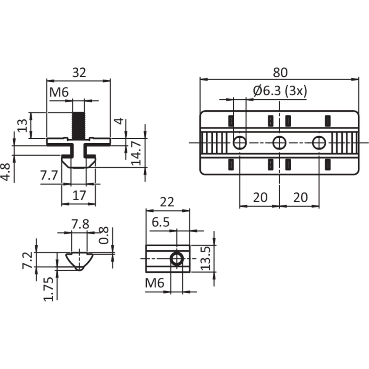 Profilgleiter ZN 40x80 - Mit POM Gleitschuhen & 2 Sechskantmuttern M6 Für Nut 8