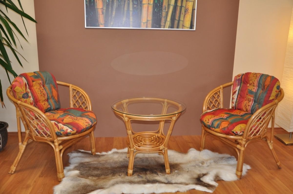 Rattangarnitur Bahama Set - 2 Sessel + Tisch Mit Polstern