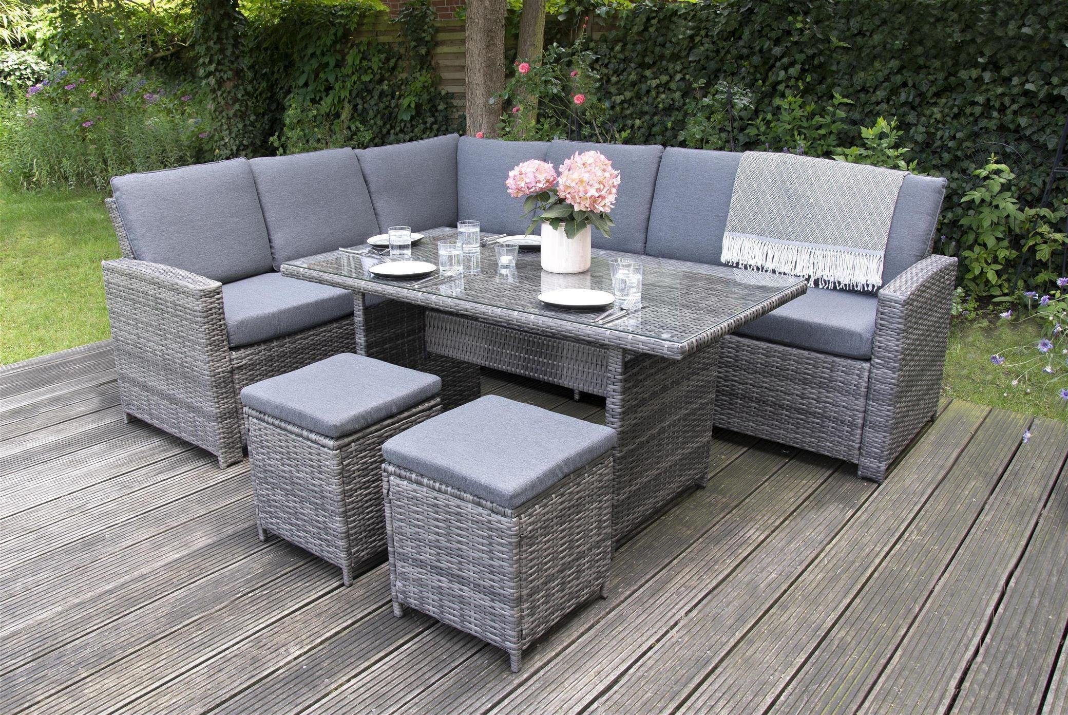 Tectake Gartenmöbel Set 2 Sofas + Tisch - Lounge Garnitur Hellgrau Outdoor