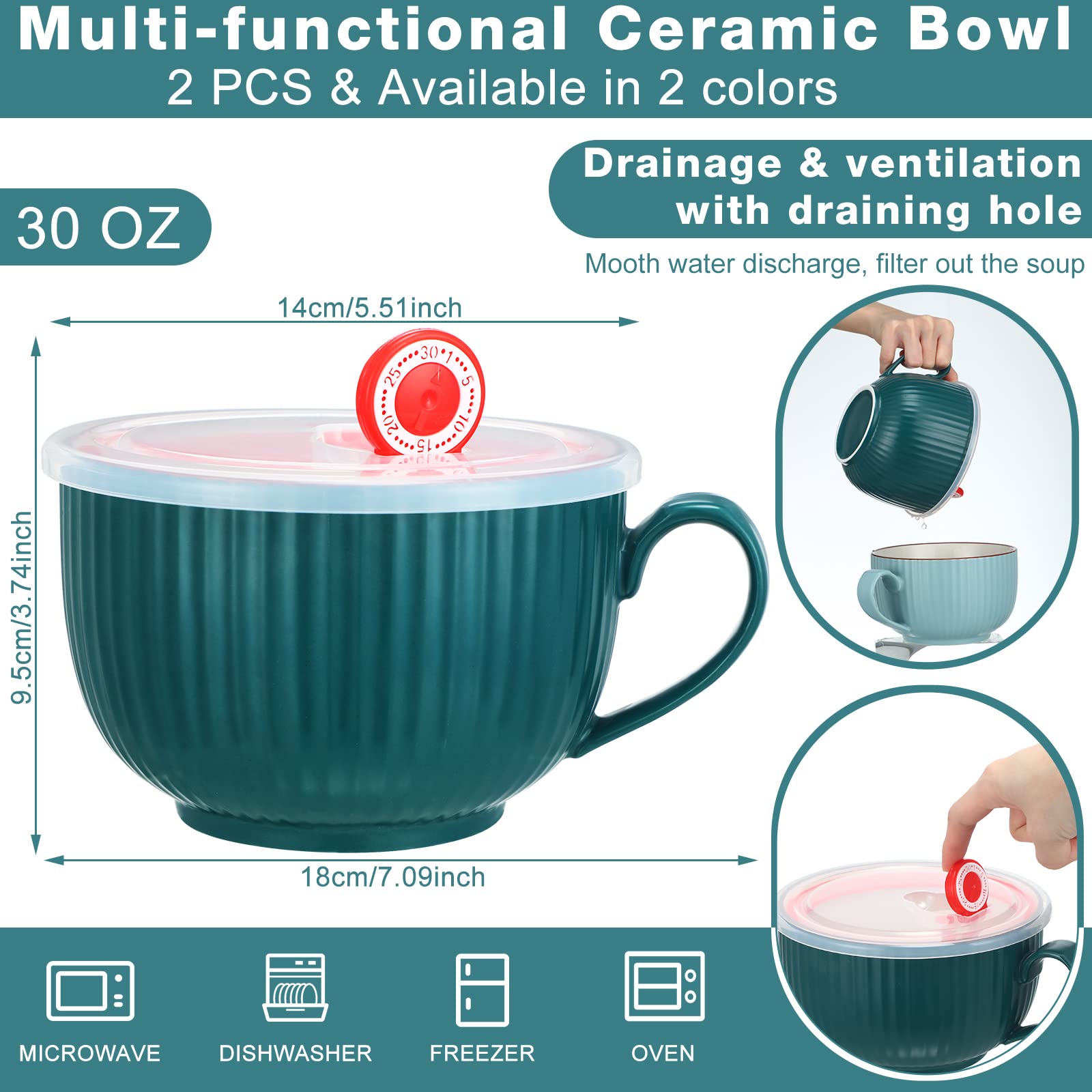 MATICAN Mikrowellen-Suppentassen - 2 Stück, 500 Ml, Grau & Grün, Mit Deckel