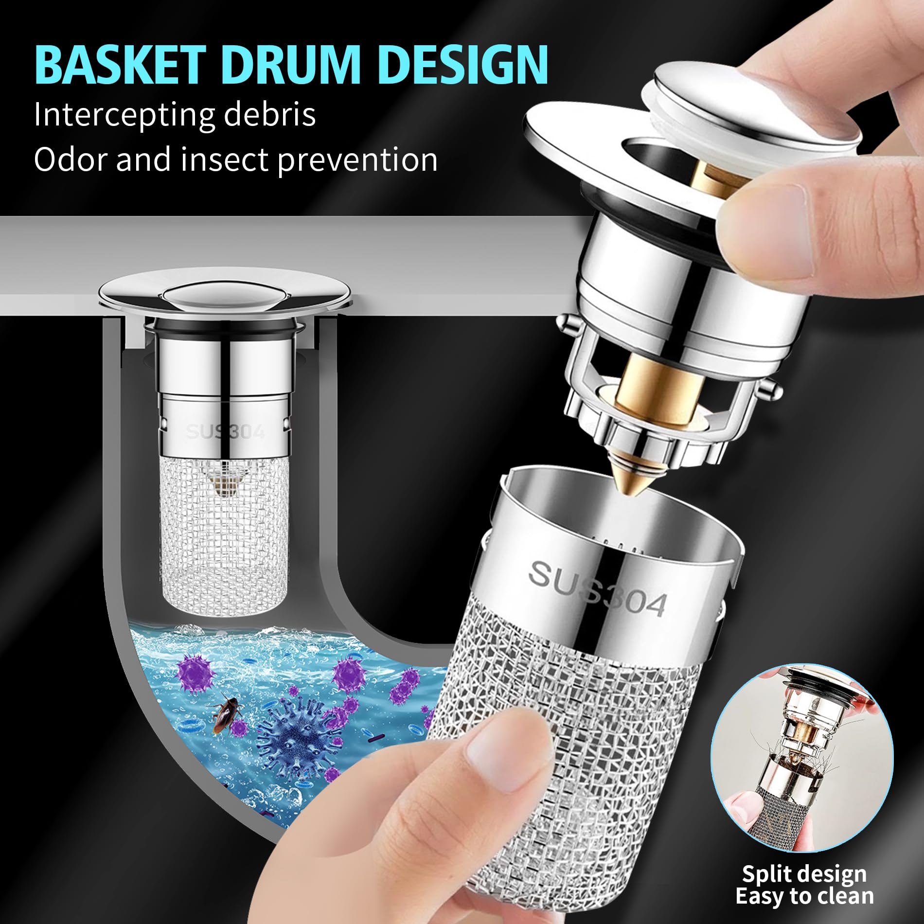 2 Stück Edelstahl Pop-Up Abflusssieb - Universal Ablaufstöpsel Für Waschbecken 34-40mm