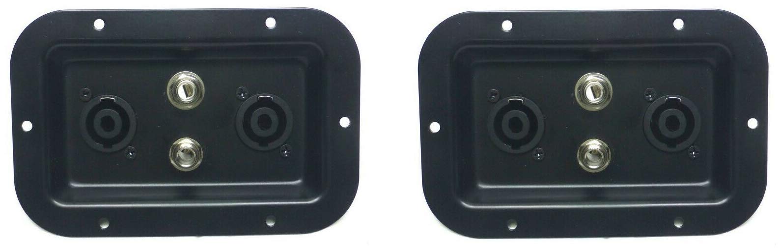 Diese beiden Speakon-Lautsprecherbuchsen machen deine Sound-Anlage professioneller! Aus stabilem Eisen gefertigt, halten sie auch bei intensiver Nutzung problemlos mit. Die schwarze Oberfläche passt zu den meisten Lautsprecher-Gehäusen. Mit 136 x 89 mm Gesamtgröße und standardisierten Bohrungen (4 mm Durchmesser) lassen sie sich einfach einbauen. Perfekt für Heimlautsprecher, PA-Boxen oder Auto-Soundanlagen. Die mitgelieferten Befestigungsschrauben erleichtern die Montage. Ob für dein Heimkino, die Musikanlage in der Bar oder für Veranstaltungen - mit diesen Buchsen bekommst du einen sauberen, professionellen Anschluss. Einfach zu installieren und sofort einsatzbereit. Mach deine Audio-Installation komplett!
