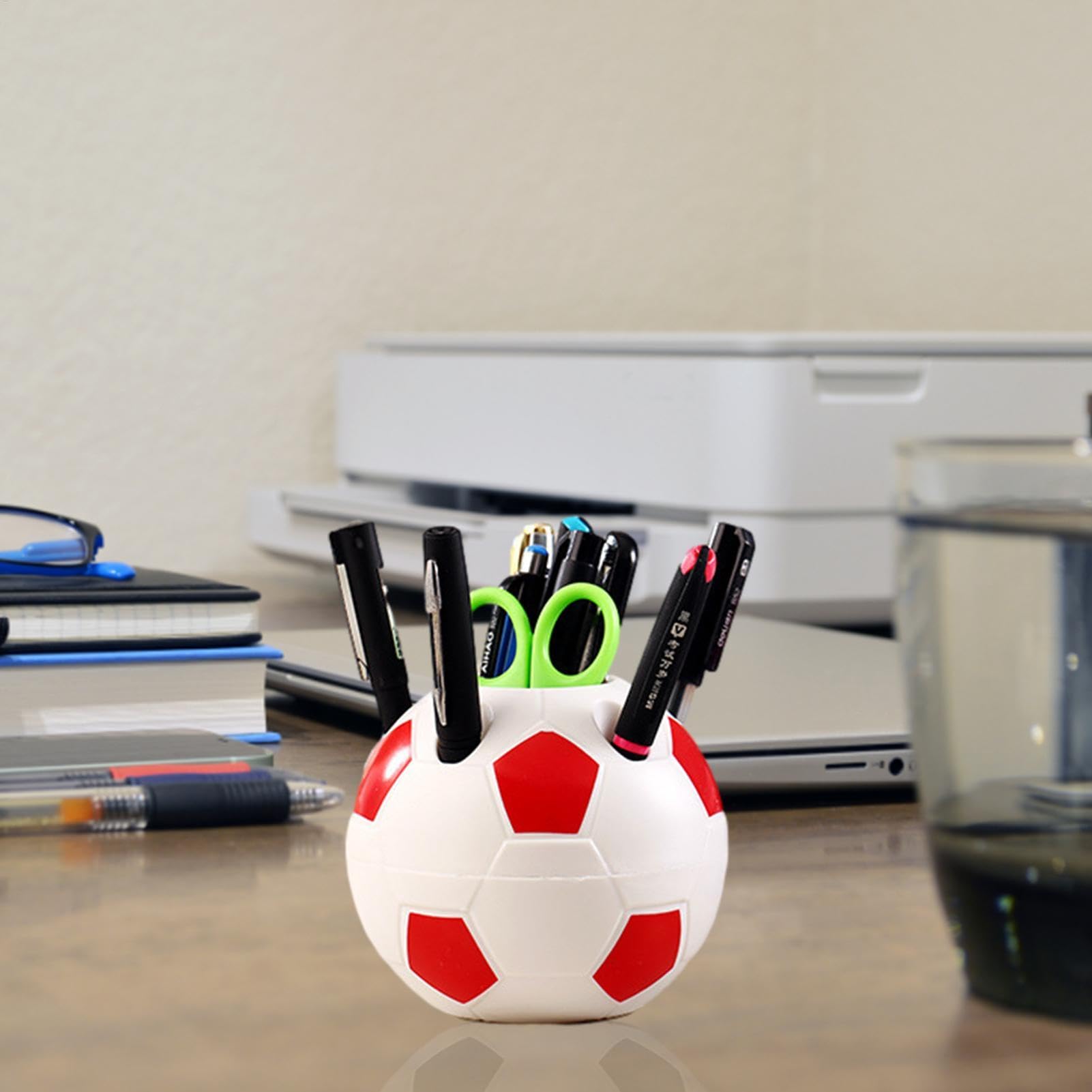 Für alle, die Fußball lieben! Diese niedlichen Fußball-Stiftehalter bringen deine Leidenschaft auf den Schreibtisch. Im Set mit zwei Haltern in Rot und Schwarz (je 9,5x10,5cm) hast du genug Platz für Stifte, Marker und anderes Büromaterial. Aus stabilem Kunststoff gefertigt, halten sie deinen Arbeitsplatz ordentlich und sind dabei ein echter Hingucker. Perfekt fürs Kinderzimmer, Home-Office oder als Geschenk für fußballbegeisterte Freunde und Kollegen. Die kreative Fußball-Form sorgt für gute Laune und zeigt jedem, wo deine sportlichen Sympathien liegen. Praktisch, witzig und ein Muss für echte Fans!