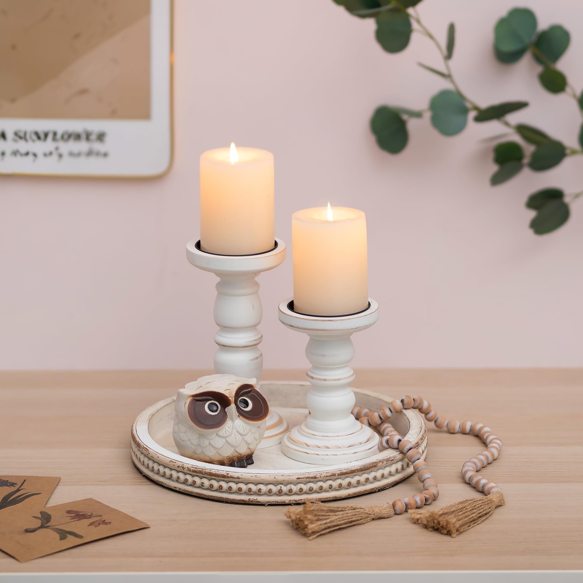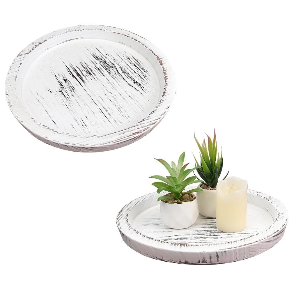 Mulaibdin Deko Tablett Set - 2 Stück Holztablett Rund Für Kerzen & Deko