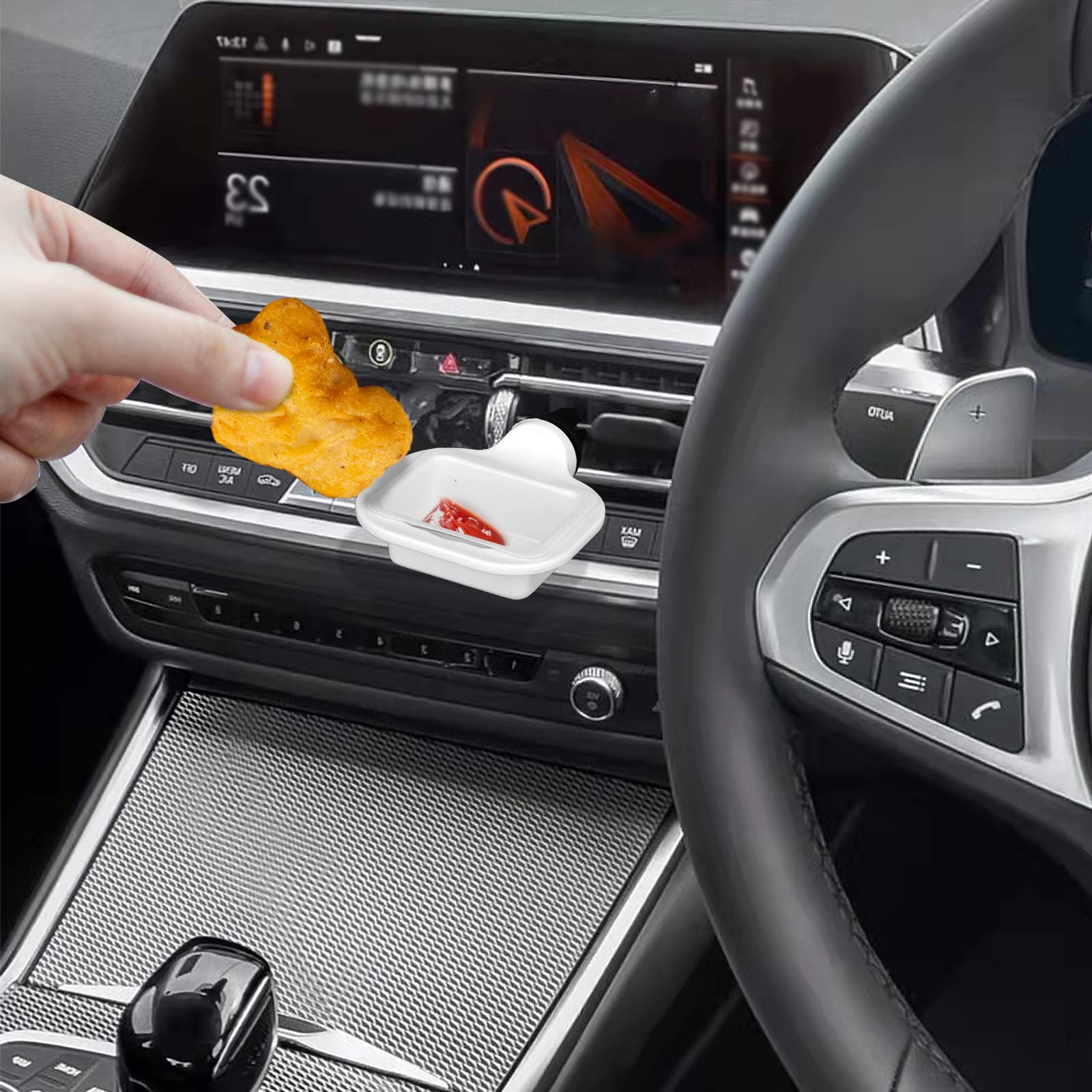 Genial für unterwegs! Diese Saucenhalter fürs Auto klemmen sich fest in den Lüftungsschlitz und halten deine Dip-Saucen sicher. Aus Silikon und Metall - rutscht auch auf holprigen Straßen nicht raus. Die geometrische Öffnung passt für alle gängigen Fast-Food-Saucenbecher. Einfach den Clip in den Lüftungsschlitz stecken, Sauce reinstellen und die Hände sind frei fürs Fahren! Mit leicht zu reinigendem Tablett. Im 2er-Set - perfekt für Beifahrer und Fahrer. Nie wieder umgekippte Saucen im Auto!
