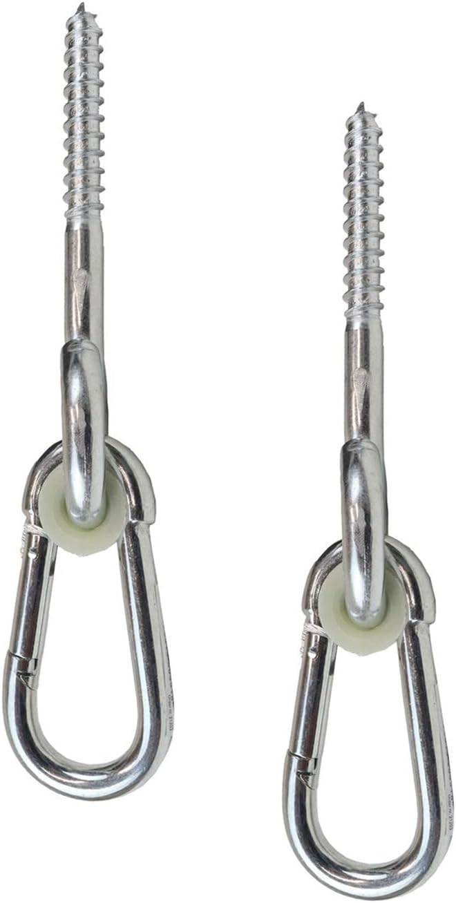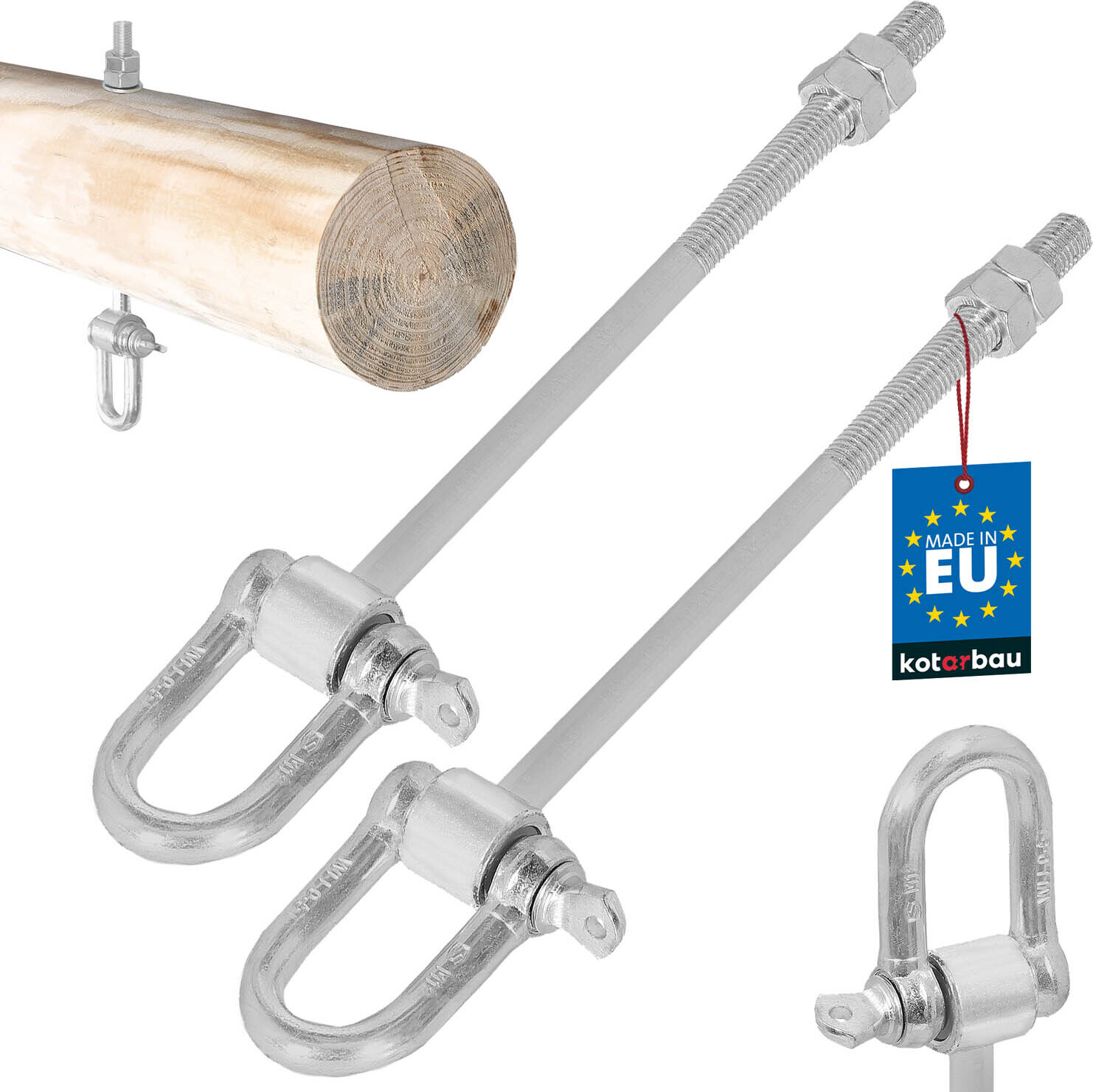 Sichere Schaukelaufhängung für deinen Garten! Dieses Set enthält 2 verzinkte Schaukelhaken mit Karabinern. Gewinde M12, Länge 140mm ab Öse - perfekt für Holzstärken bis 120mm. Jeder Haken kommt mit Mutter und Scheibe für festen Sitz. Die Karabiner haben Nylonbuchsen für leises, schwingungsarmes Schaukeln. Einfache Montage: Durch das Holz schrauben, Mutter festziehen, fertig! Verzinkt gegen Rost - hält auch bei Regen und Feuchtigkeit stand. Perfekt für Gartenschaukeln, Hängesessel oder andere Aufhängungen. Macht deinen Garten zum Spielparadies für die Kinder. Robust und langlebig verarbeitet. Einfach installieren und jahrelang Freude haben!