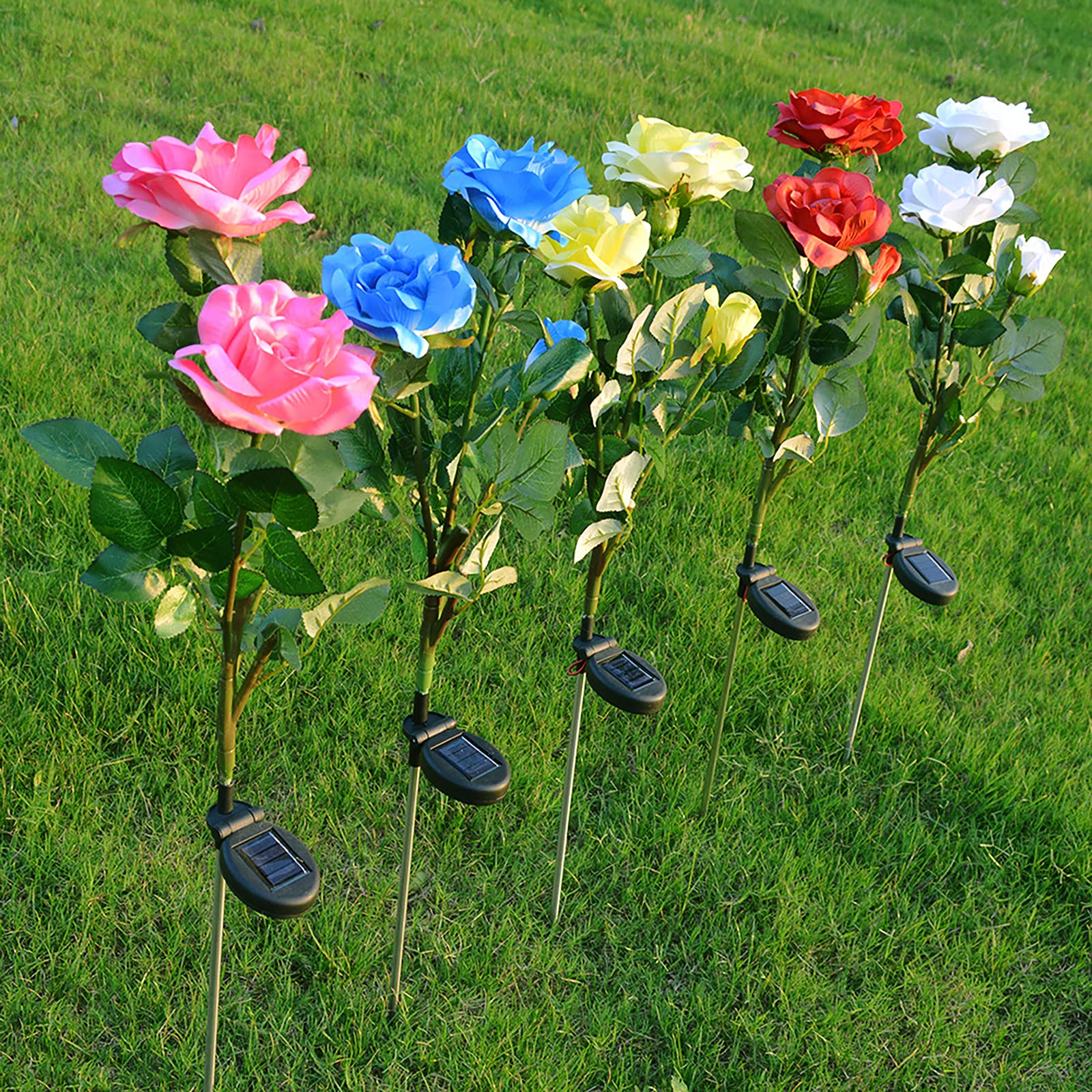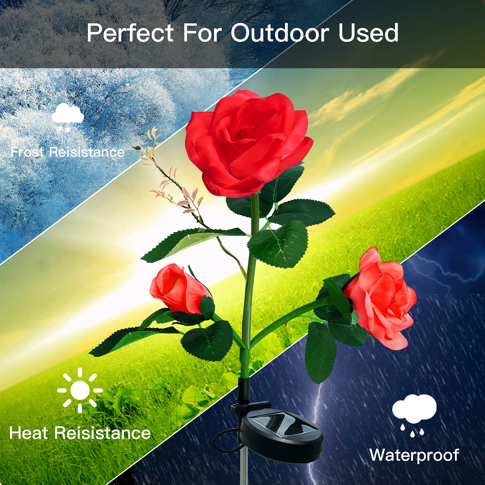 ZVO Solar Gartenleuchten 2 Stück - Rosenblumen Mit 10 LED, IP65 Wasserdicht, 73cm Höhe