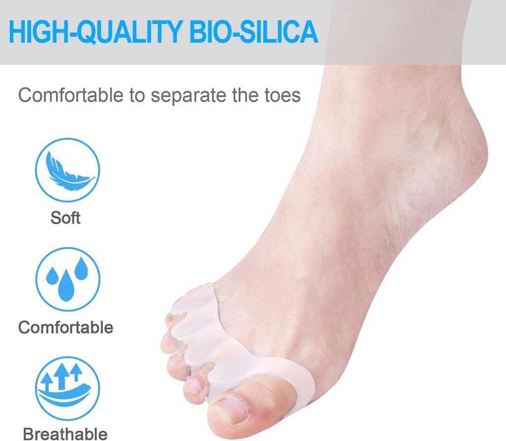 Diese Ballenzehen-Schienen aus weichem Silikon sind einfach super bequem! Im 2er-Set geliefert, kannst du sie abwechselnd tragen. Das atmungsaktive Material passt sich perfekt an deine Füße an und korrigiert sanft die Position deines großen Zehs. Durch die physikalische Wirkung werden Ballenzehen kontinuierlich gestützt - so sind deine Füße den ganzen Tag über geschützt. Einfach mit warmem Wasser reinigen und lufttrocknen lassen - mehr Pflege brauchen sie nicht. Bei regelmäßiger Anwendung können sie Fußprobleme lindern und für mehr Komfort sorgen. Falls du Fragen hast, kümmern wir uns innerhalb von 24 Stunden um eine Lösung. Einfach ausprobieren und deinen Füßen etwas Gutes tun!