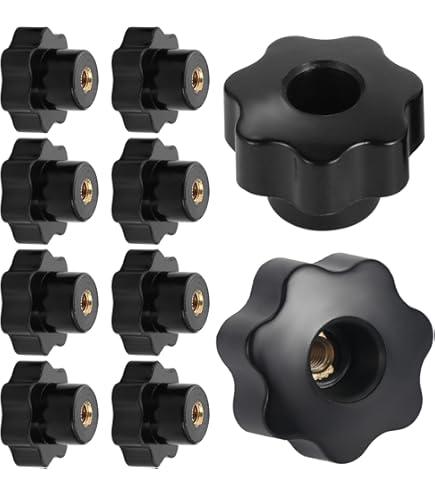Praktische Griffmuttern für unzählige Anwendungen! Dieses 2er-Set Sterngriffmuttern in M12 macht das Einstellen und Festziehen zum Kinderspiel. Mit einem großen Griffdurchmesser von 63mm liegt sie perfekt in der Hand und ermöglicht gutes Drehmoment auch ohne Werkzeug. Die schwarze PF31-Kunststoff-Ausführung ist nicht nur stylisch, sondern auch robust und langlebig. Das integrierte Stahlgewinde garantiert sicheren Halt und passt perfekt zu M12 Gewindestangen oder -bolzen. Nach DIN6336 gefertigt, entspricht sie industriellen Standards. Perfekt für Maschinenbau, Möbelmontage, DIY-Projekte oder Werkstatt-Einsatz. Die Abmessungen (21mm Höhe, 42mm Bund, 22mm Gewindelänge) machen sie zum vielseitigen Helfer. Einfach aufschrauben und sofort von der praktischen Handhabung profitieren. Ob für Profis oder Heimwerker - diese Griffmuttern erleichtern dir die Arbeit enorm!