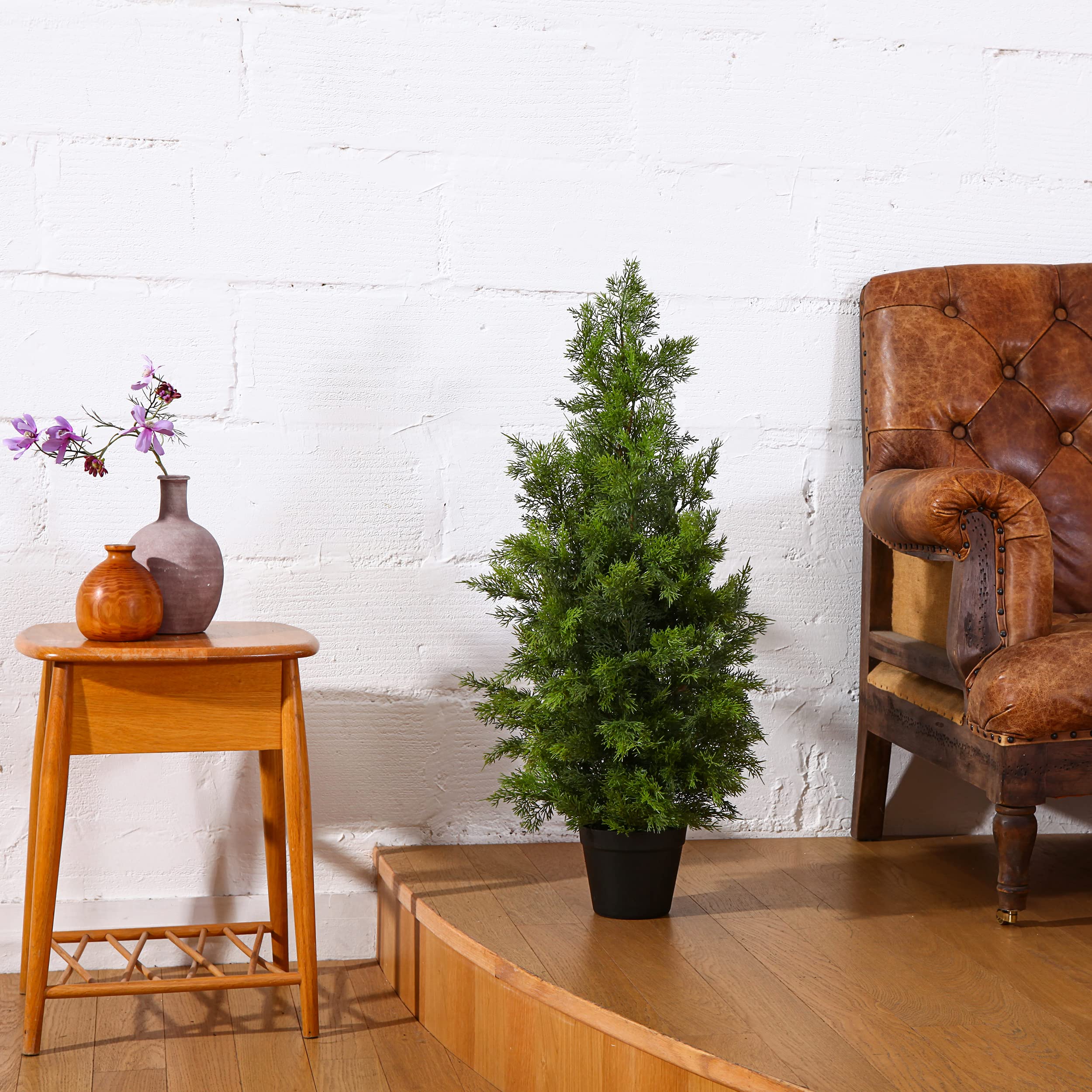 Künstliche Zeder 90cm 2 Stück - UV-geschützte Kunstpflanzen Im Topf Für Garten & Balkon