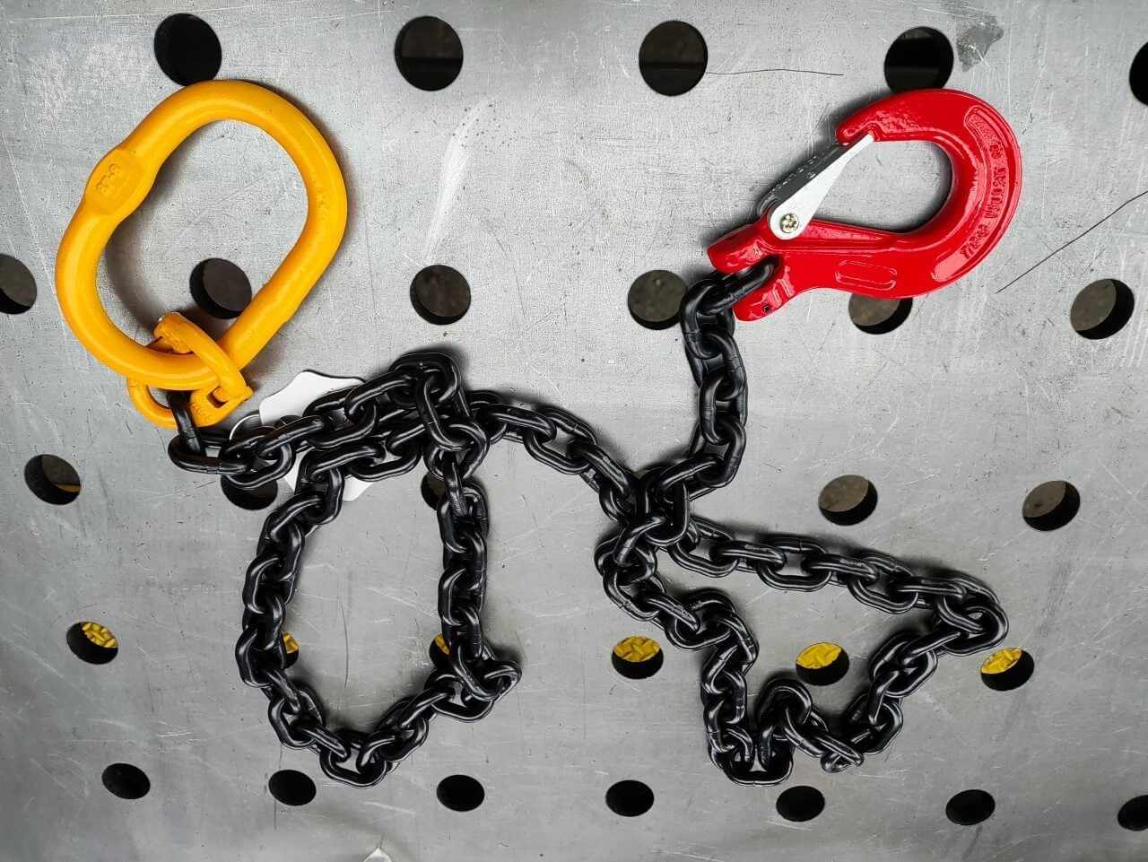Robust und zuverlässig für schwere Lasten! Diese Anschlagkette besteht aus zwei Strängen à 2m Länge und hat eine massive Tragfähigkeit von 2 Tonnen (4409 lbs). Aus legiertem Stahl geschmiedet, ist sie extrem langlebig, schlagfest und rostbeständig. Die rotschwarze Optik sieht nicht nur gut aus, sondern ist auch praktisch. Mit den Sicherheitshaken kannst du Lasten sicher einhaken ohne Angst vor versehentlichem Lösen. Die glatten Kanten sorgen für zusätzliche Sicherheit beim Handling. Perfekt für Werkstätten, Lager, Baustellen oder Garagen - überall wo schwere Dinge bewegt werden müssen. Einfach am Kran befestigen, Last einhaken und los geht's. Mit 5,5kg Gesamtgewicht ist sie handlich aber dennoch extrem stabil. Ein echter Arbeitstier!