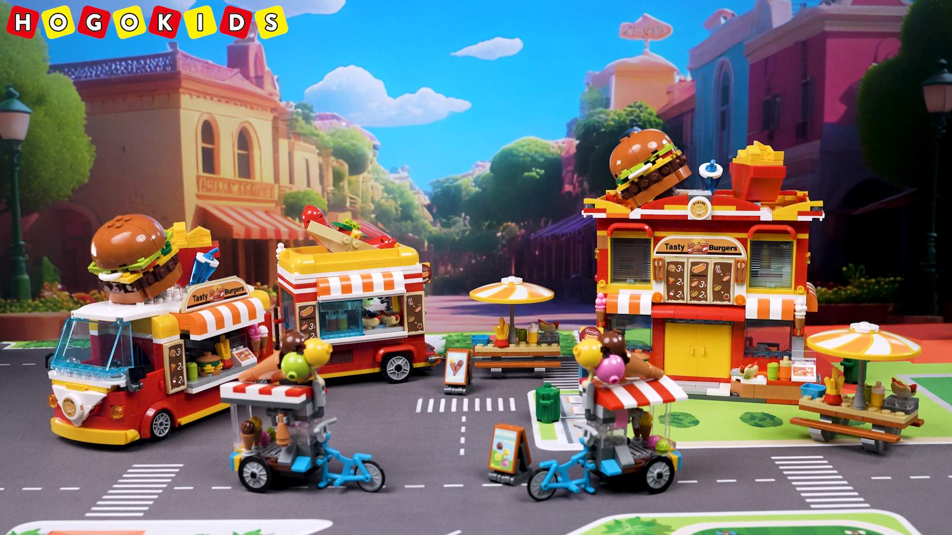 HOGOKIDS Burger Truck Bauspielzeug - 2-in-1 Burger Van & Restaurant Mit 826 Teilen