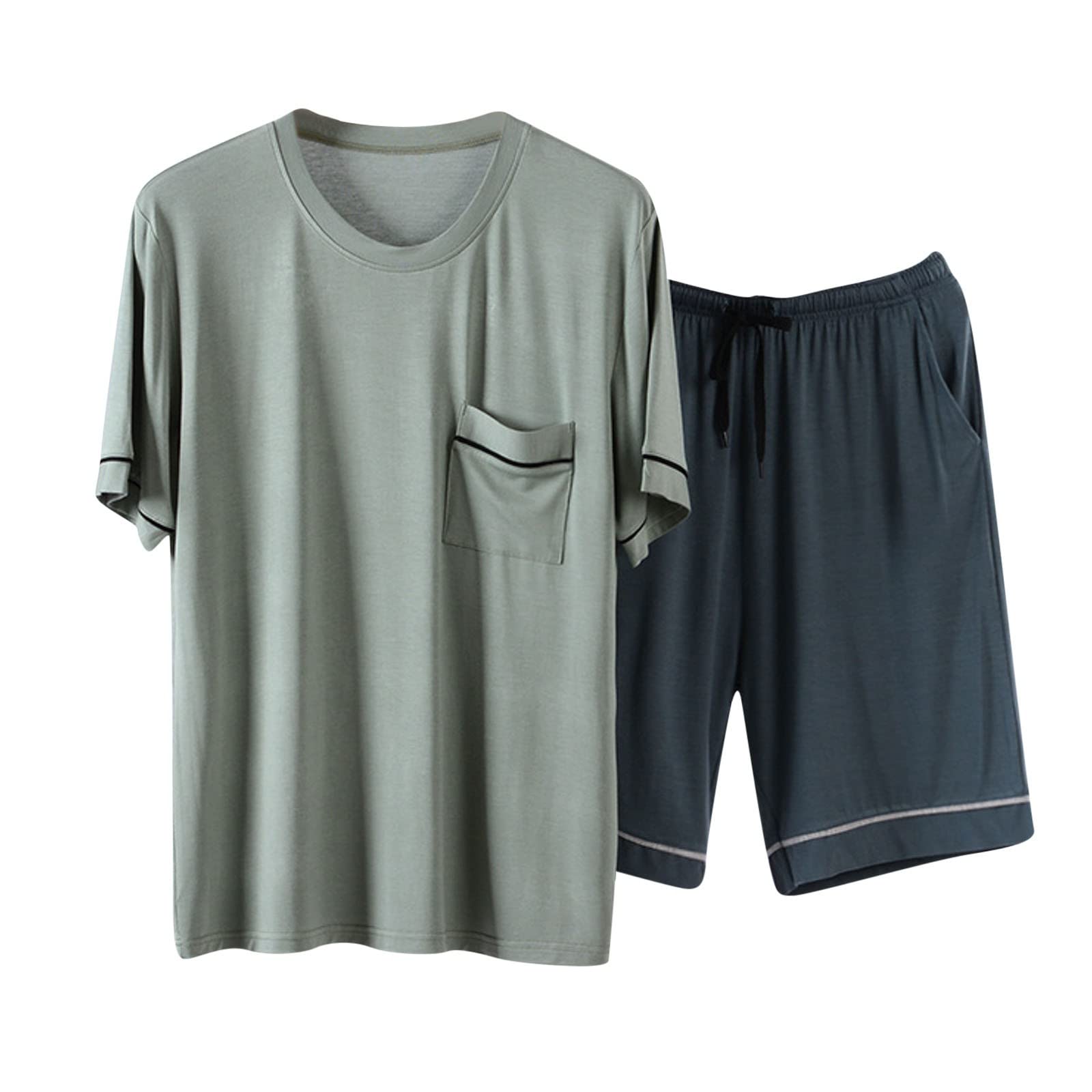 Herren Schlafanzug Kurz 2-teilig - Lustiger Pyjama Aus Baumwolle | Mit Taschen & Loose Fit | Sommer Schlafoutfit