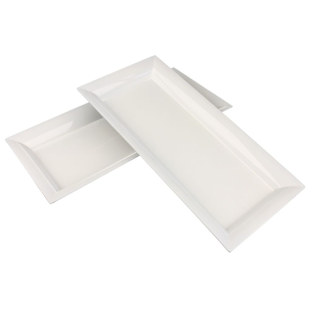 QUARKZMAN Dekotablett Set 2-teilig - Weiße Tabletts 30x22cm - Organizer Für Badezimmer & Küche