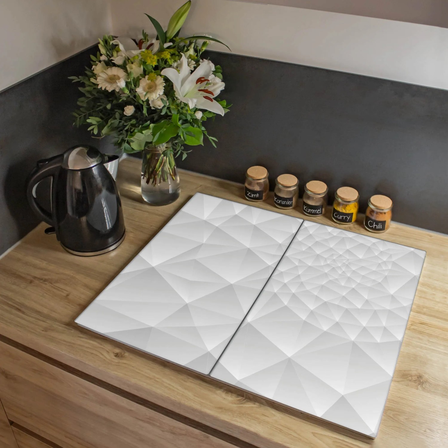 2-teilige Herdabdeckplatte Aus Glas - Ceranfeld Abdeckung & Schneidebrett