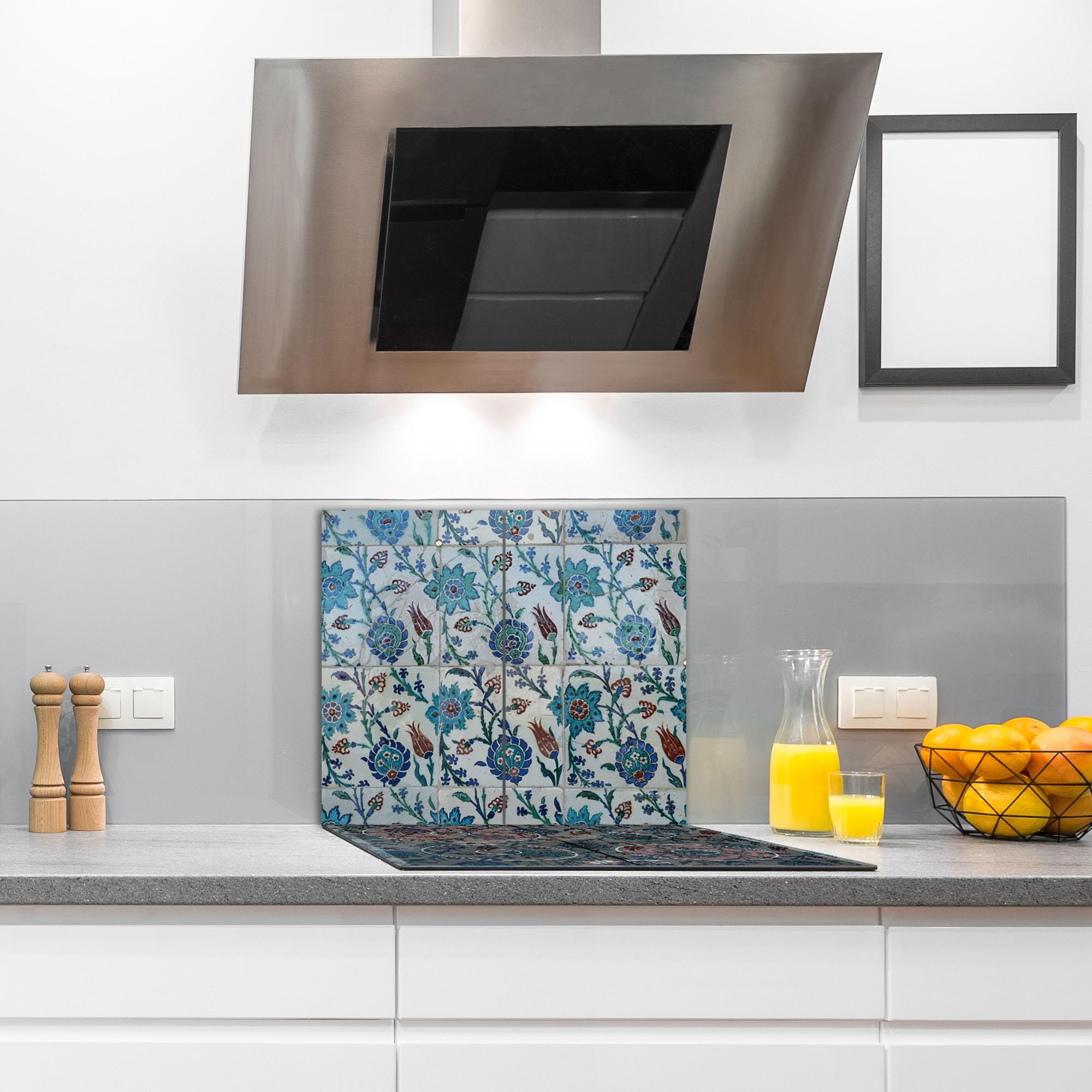 Willst du deine Küche praktischer und stylischer gestalten? Diese 2-teilige Herdabdeckplatte aus 4mm starkem Sicherheitsglas ist die perfekte Lösung! Mit den Maßen 2x30x52cm passt sie auf die meisten Ceranfelder, Induktions- und Elektroherde (Achtung: nicht für Gasherde!). Sie dient nicht nur als Schutz für dein Kochfeld, wenn du es nicht benutzt, sondern auch als praktische Ablagefläche oder sogar als Schneidebrett. Die glatte Oberfläche ist hygienisch, geruchsneutral und leicht zu reinigen. Mit dem blauen Mosaik-Design wird sie zum echten Hingucker in deiner Küche. Inklusive Silikonfüßchen zum Aufkleben. Eine vielseitige Ergänzung für jede Küche - ob als Servierplatte, Spritzschutz oder einfach nur zur Verschönerung!