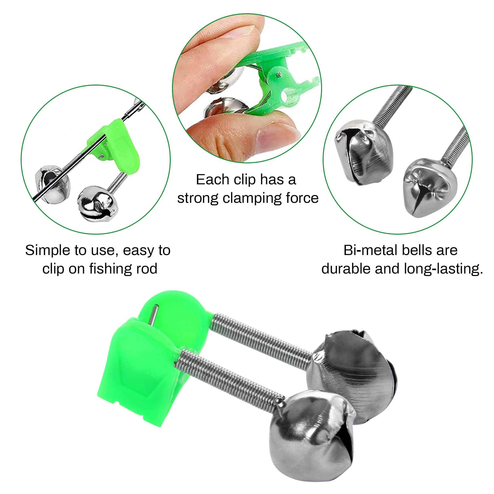 Nie mehr den großen Fang verpassen! Diese 20 Aalglocken mit Spiralclip sind deine perfekten Begleiter beim Nachtangeln. Einfach an der Rute befestigen - sobald ein Fisch anbeißt, macht die Glocke laut 'Kling!' und warnt dich. Mit 5cm Länge und 1.5cm Glockendurchmesser gut sicht- und hörbar. Die Feder ist fest vernagelt und fällt nicht ab. Aus robustem Kunststoff/Metall, korrosionsbeständig für Meerwasser. Besonderes Feature: Anschluss für Leuchtstoffröhren oder LEDs - nachts super sichtbar! Ideal für Meeresangeln, Nachtangeln oder trübe Tage. Ein Muss für jeden Angler!