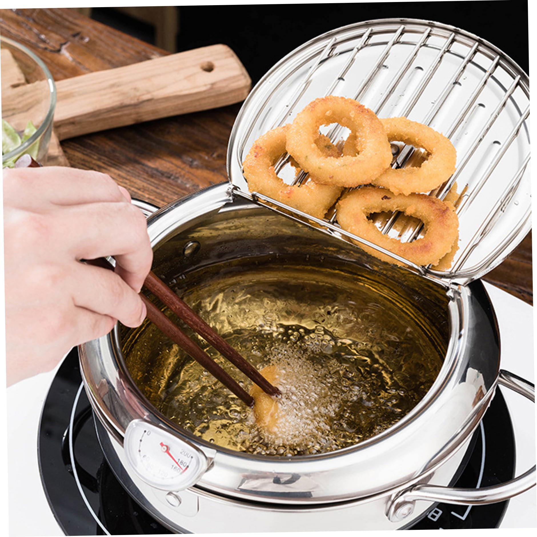 Tempura-Fritteuse 20 Cm Mit Antihaftbeschichtung - Inklusive Abtropfgestell Für Knuspriges Frittieren