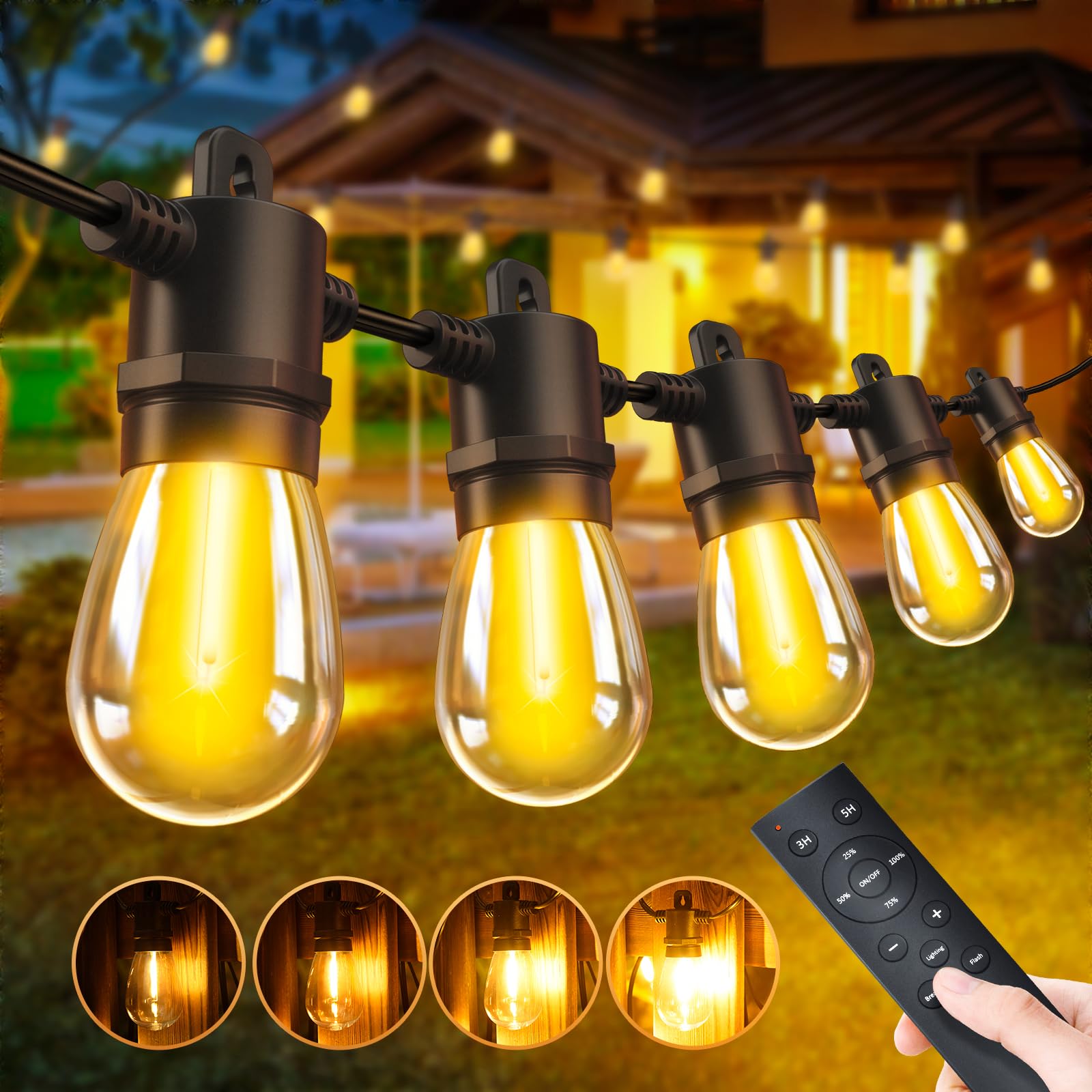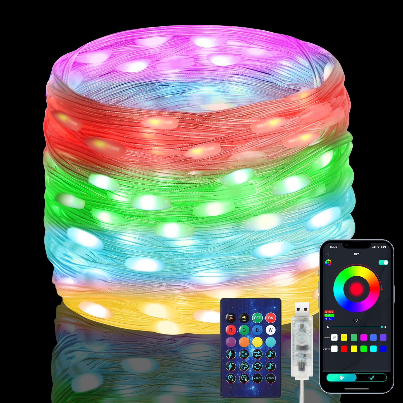 Lichtstimmung pur! Diese 15 Meter lange RGB LED Lichterkette mit 20 großen S14-Glühbirnen bringt Farbe in dein Zuhause. Per App, Fernbedienung oder direkt am Netzteil steuerbar - über 100 Modi stehen zur Auswahl. Besonders cool: Du kannst jede einzelne Birne individuell ansteuern! IP65 wasserdicht, also perfekt für Terrasse, Garten oder Balkon. Einfach mit den mitgelieferten Haken aufhängen und schon hast du professionelle Beleuchtung. Perfekt für Partys, Hochzeiten, Weihnachten oder einfach für gemütliche Abende. Die Birnen haben einen schönen vintage Look und sorgen für absolute Wohlfühl-Atmosphäre!