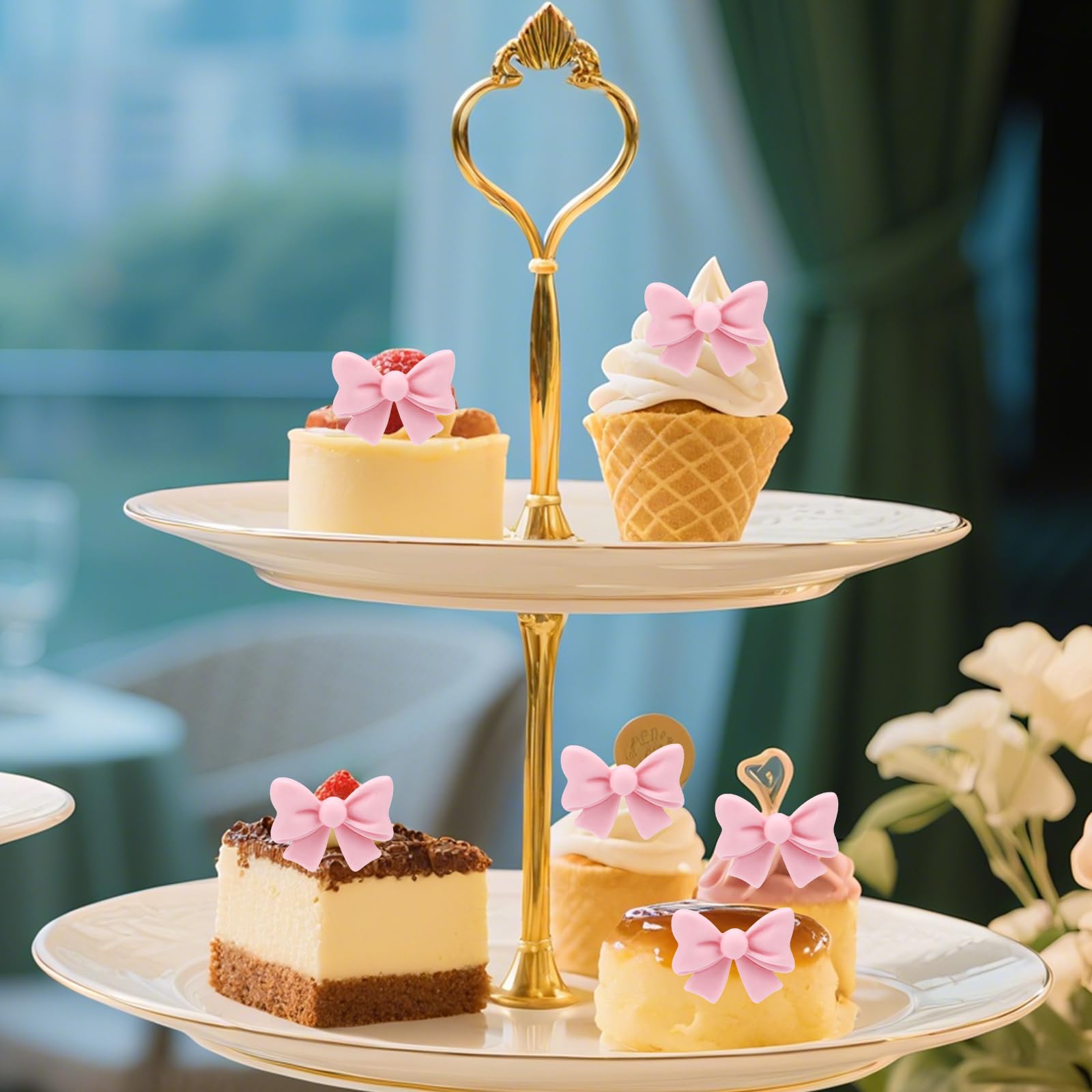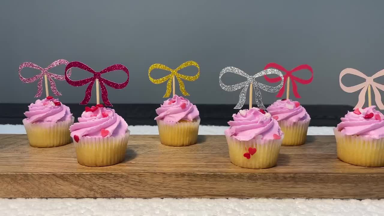 20 Stück Cupcake Deko Mit Rosa Schleifen - Harz Kuchen Topper Für Parties & Feiern