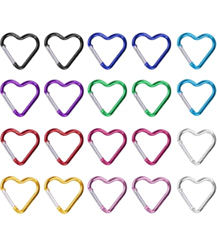 Total süß und super praktisch! Diese 20 Mini-Karabiner im Herz-Design in 10 verschiedenen Farben sind echte Alleskönner. In jeder Farbe gibt's 2 Stück - perfekt zum Kombinieren. Die satten Farben wie Grün, Gelb, Pink und andere bringen sofort Leben in deine Schlüssel, Taschen oder Rucksäcke. Das herzförmige Design ist einfach niedlich und durchbricht die Langeweile normaler Karabiner. Super klein und handlich, aber dennoch robust - brechen nicht so leicht. Die Federring-Funktion macht das Öffnen und Schließen zum Kinderspiel. Perfekt zum Organisieren von Schlüsseln, als Anhänger für deine Tasche oder für kreative DIY-Projekte. Kombiniere sie mit kleinen Anhängern, Puppen oder anderen Accessoires und gestalte dir einzigartige Kreationen. Ideal für den Alltag, die Schule, Reisen oder als Geschenk für Freundinnen. Mach deine Sachen persönlicher und bunter - mit diesen süßen Karabinern wird alles gleich viel fröhlicher! Einfach an den Rucksack hängen, Schlüssel befestigen oder basteln - der Kreativität sind keine Grenzen gesetzt.