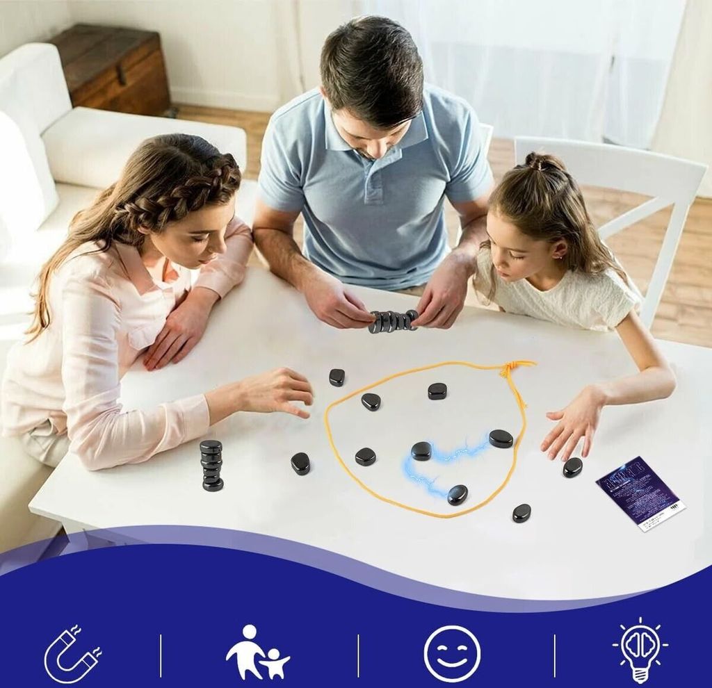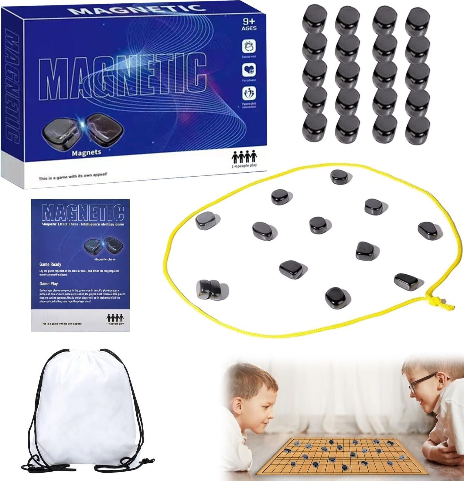 Spielspaß für unterwegs! Dieses magnetische Strategiespiel mit 20 bunten Magnetsteinen ist perfekt für Reisen, Camping oder gemütliche Spieleabende. Die starken Magnete haften sicher, aber Vorsicht - sie dürfen sich im Spiel nicht verbinden! Der mitgelieferte Aufbewahrungsbeutel macht es super transportabel. Das Spiel fördert logisches Denken und strategisches Planen - für Kinder und Erwachsene gleichermaßen spannend. Einfache Regeln, aber herausforderndes Gameplay: Wer zuerst alle seine Steine loswird, gewinnt. Inklusive Spielseil und verständlicher Anleitung. Perfekt für Familienfeiern oder als Geschenk!