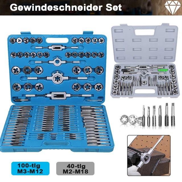 20-tlg Gewindeschneider Set M3-M12 - Metrisch Gewindebohrer & Schneideisen