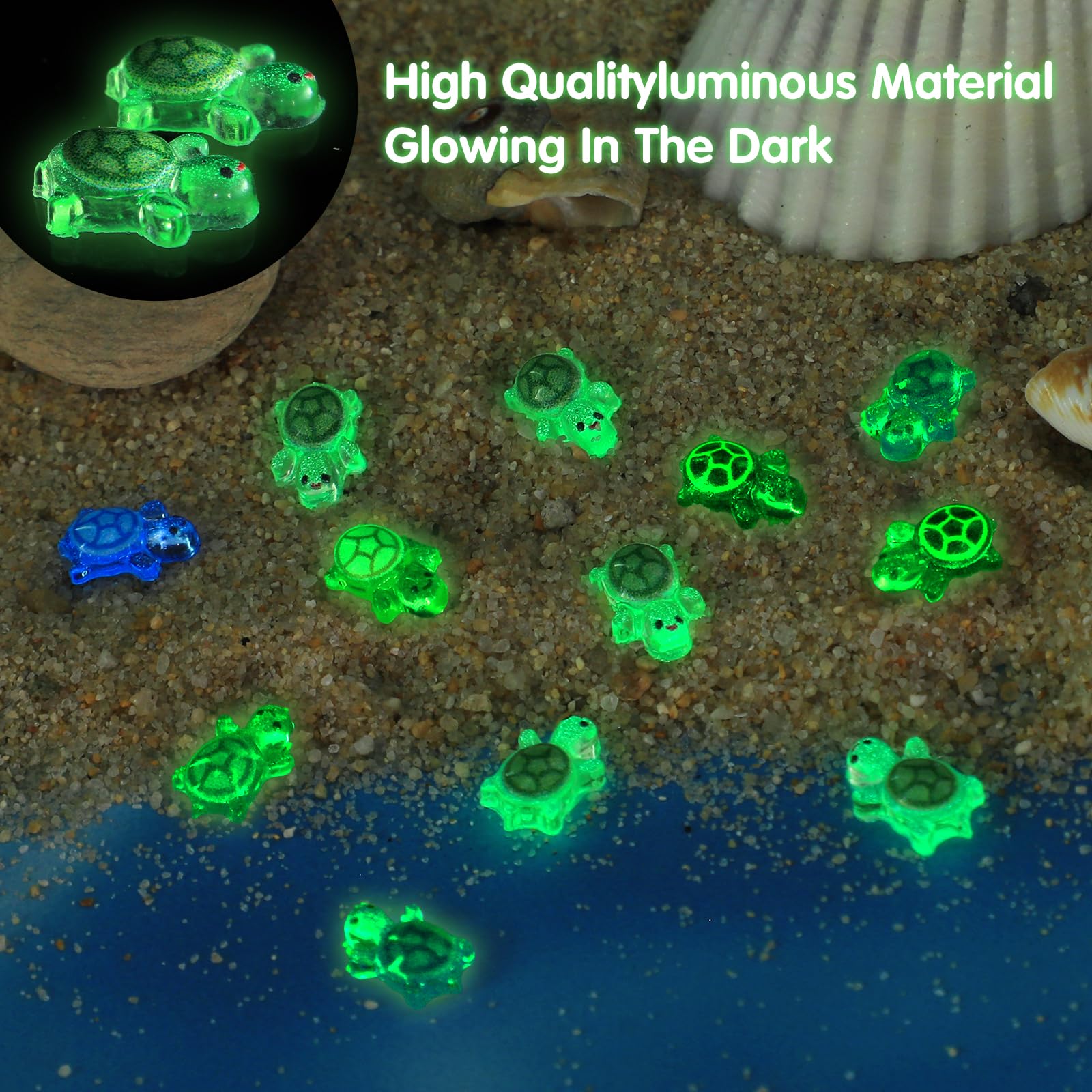 200 Stück Mini Schildkröten Aus Harz + 1 Jumbo Schildkröte - Leuchtet Im Dunkeln Für Feengärten