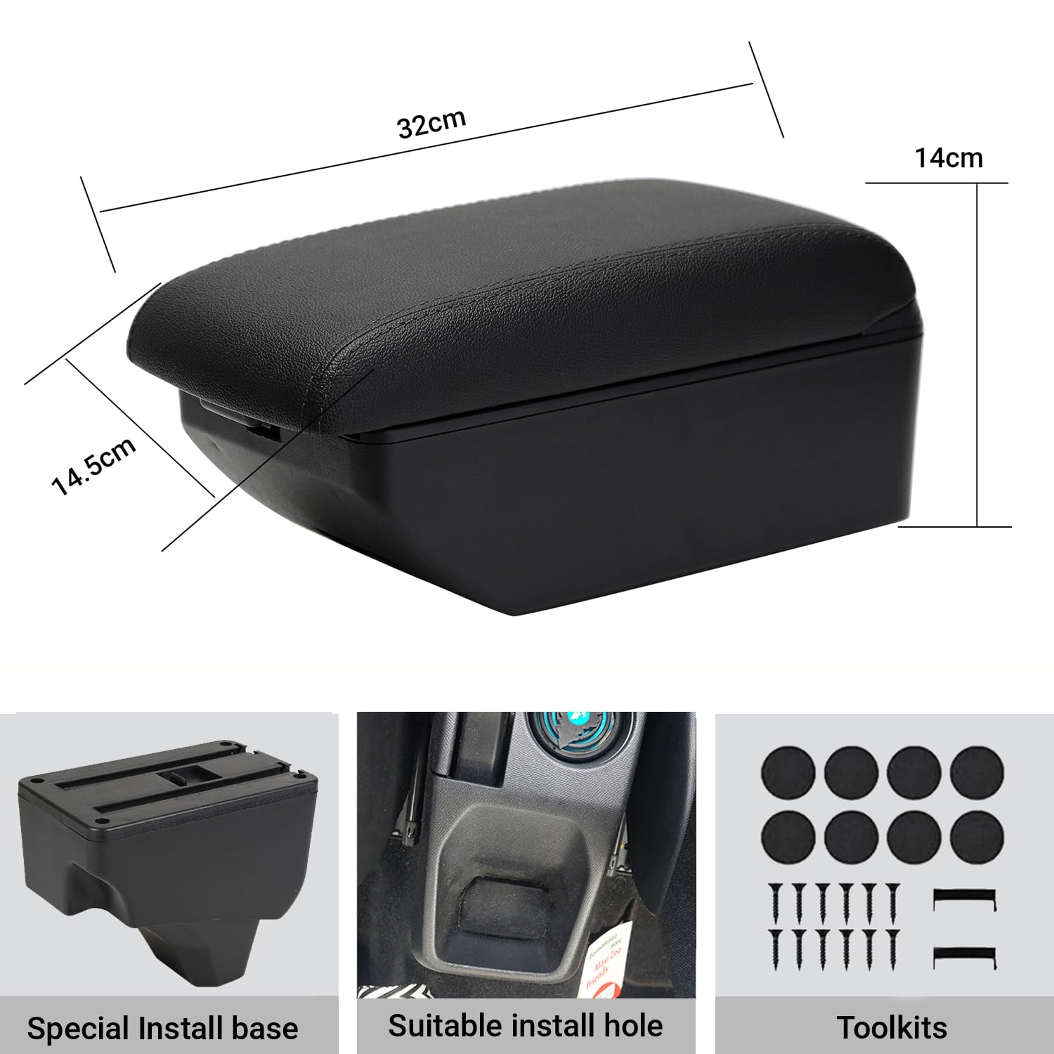 Einfach in die Mittelkonsole stecken - keine Werkzeuge nötig! Aus robustem PU-Leder und ABS-Kunststoff, wasserdicht und leicht zu reinigen. Endlich ein ordentlicher Platz für Handy, Geldbeutel und Co.