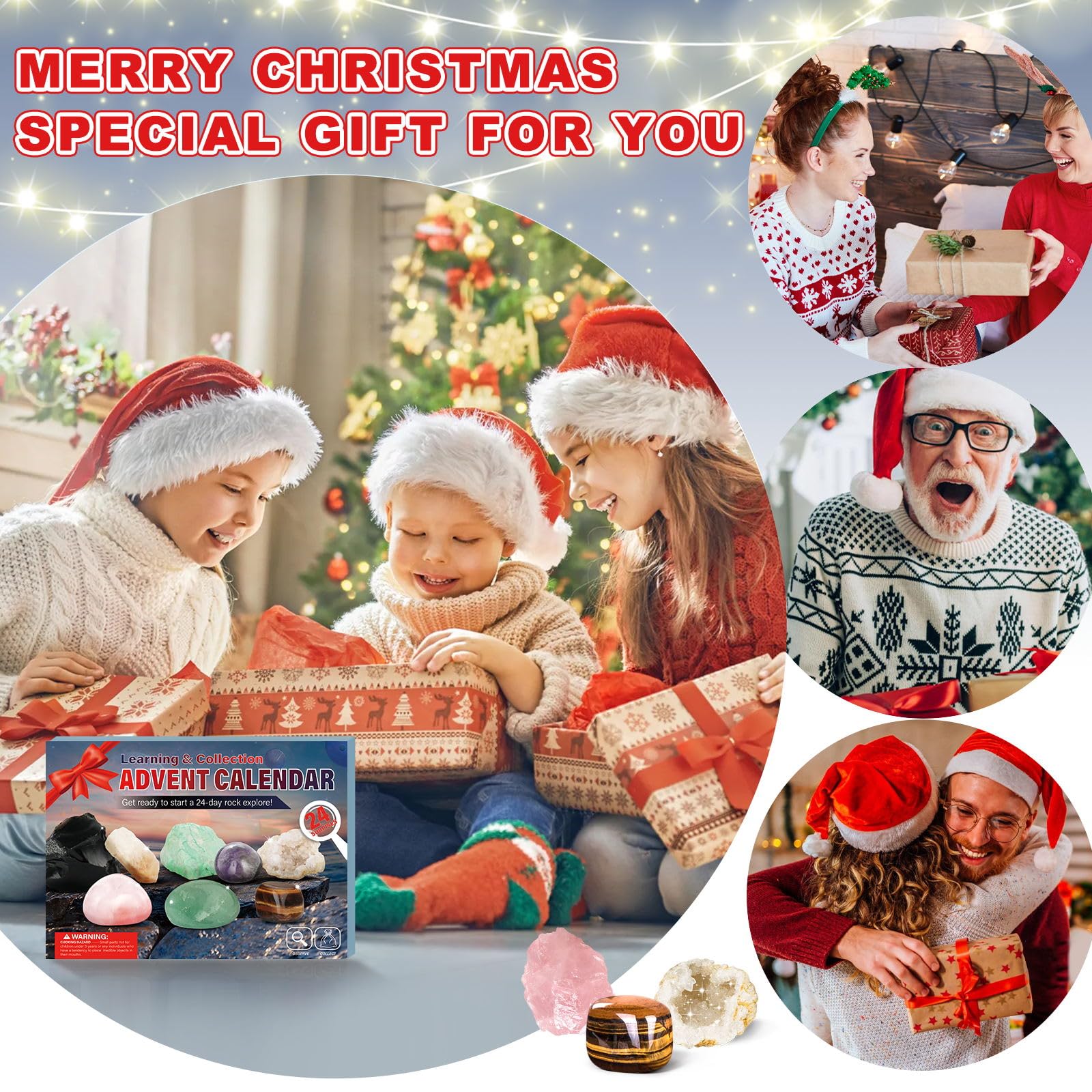 Der besondere Adventskalender für alle Stein-Fans! 24 Tage lang gibt's natürliche Edelsteine zu entdecken - von rohen Kristallen bis polierten Trommelsteinen. Inklusive Amethyst-Halskette und Aufbewahrungstasche. Alles 100% naturbelassen, ohne künstliche Farben. Perfekt für Kinder und Erwachsene, die sich für Geologie, Meditation oder einfach schöne Steine interessieren. Mit Infoblatt über die Eigenschaften jedes Steins. Mach die Vorweihnachtszeit zu einer spannenden Entdeckungsreise in die Welt der Mineralien! Ob als Geschenk oder für dich selbst - dieser Kalender bringt jeden Tag eine neue Überraschung und positive Energie. Weihnachten kann kommen!