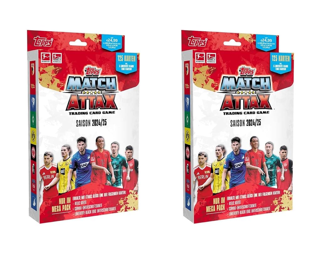 Fußball-Fans aufgepasst! Das Mega Pack Bundesliga Sammelkarten 2025/26 ist da und bringt dir die ganze Faszination des deutschen Fußballs nach Hause. In jeder Packung findest du 125 Karten - darunter 5 exklusive Limited Editions, die es nur hier gibt!
