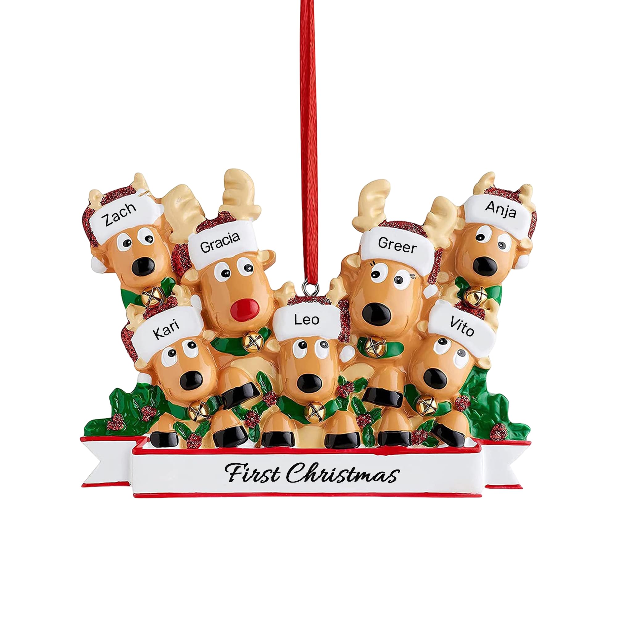 Mach deinen Weihnachtsbaum dieses Jahr ganz persönlich! Dieser niedliche Elch-Weihnachtsschmuck kann mit den Namen deiner Familienmitglieder individualisiert werden - ob für 2, 3, 4, 5, 6, 7 oder sogar 8 Personen. Aus hochwertigem Kunstharz gefertigt, ist der Anhänger robust und kann Jahr für Jahr wieder verwendet werden. Perfekt für Weihnachtsbäume, Feiern oder als Deko im Haus. Ein wunderbares Geschenk für Verwandte, Nachbarn oder Kollegen. Mit Band zum einfachen Aufhängen. Schaffe eine gemütliche Weihnachtsatmosphäre mit diesem einzigartigen Schmuckstück, das deine Familie symbolisiert. Ein echter Hingucker, der Erinnerungen schafft!