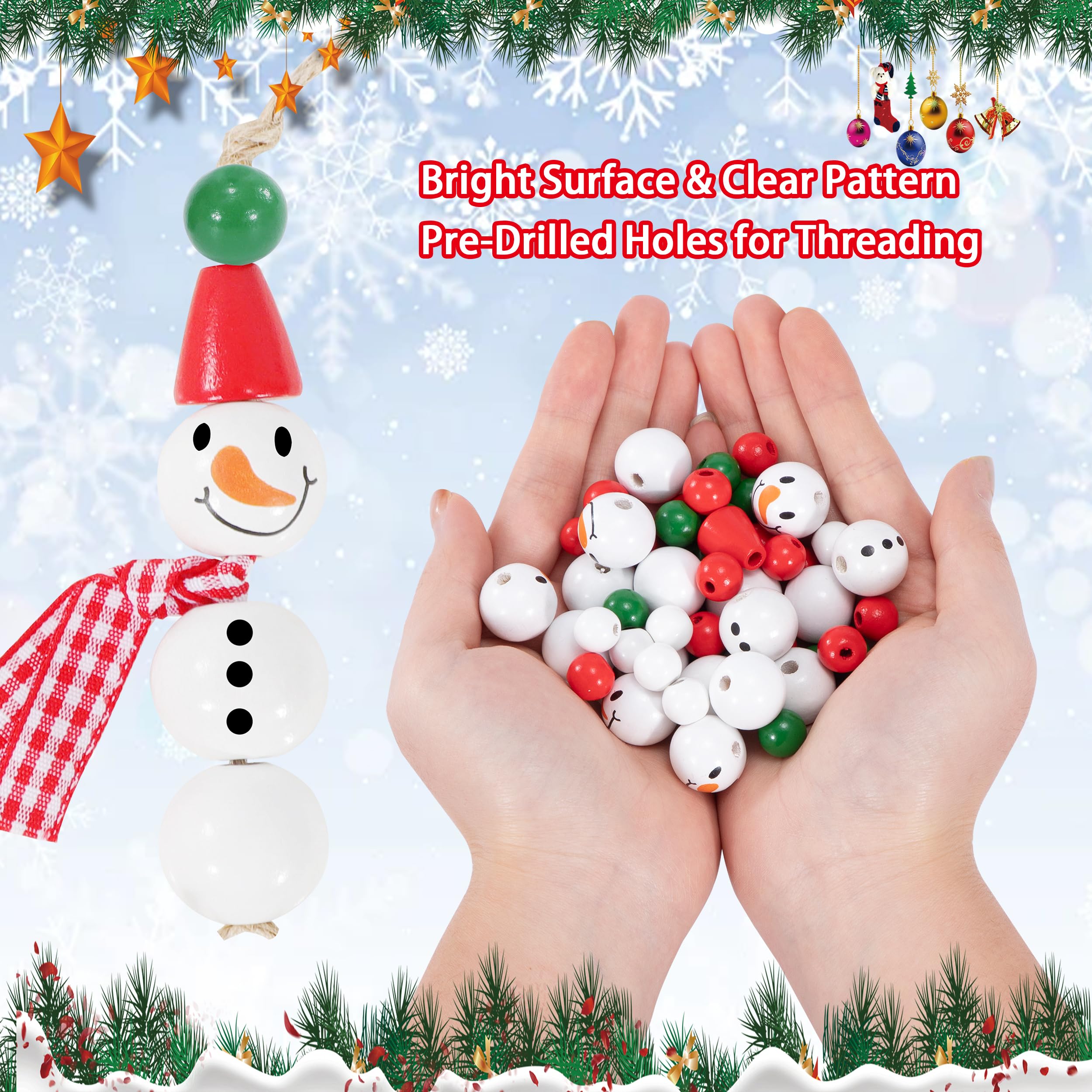 100 Schneemann Holzperlen 20mm - DIY Weihnachts Bastelset
