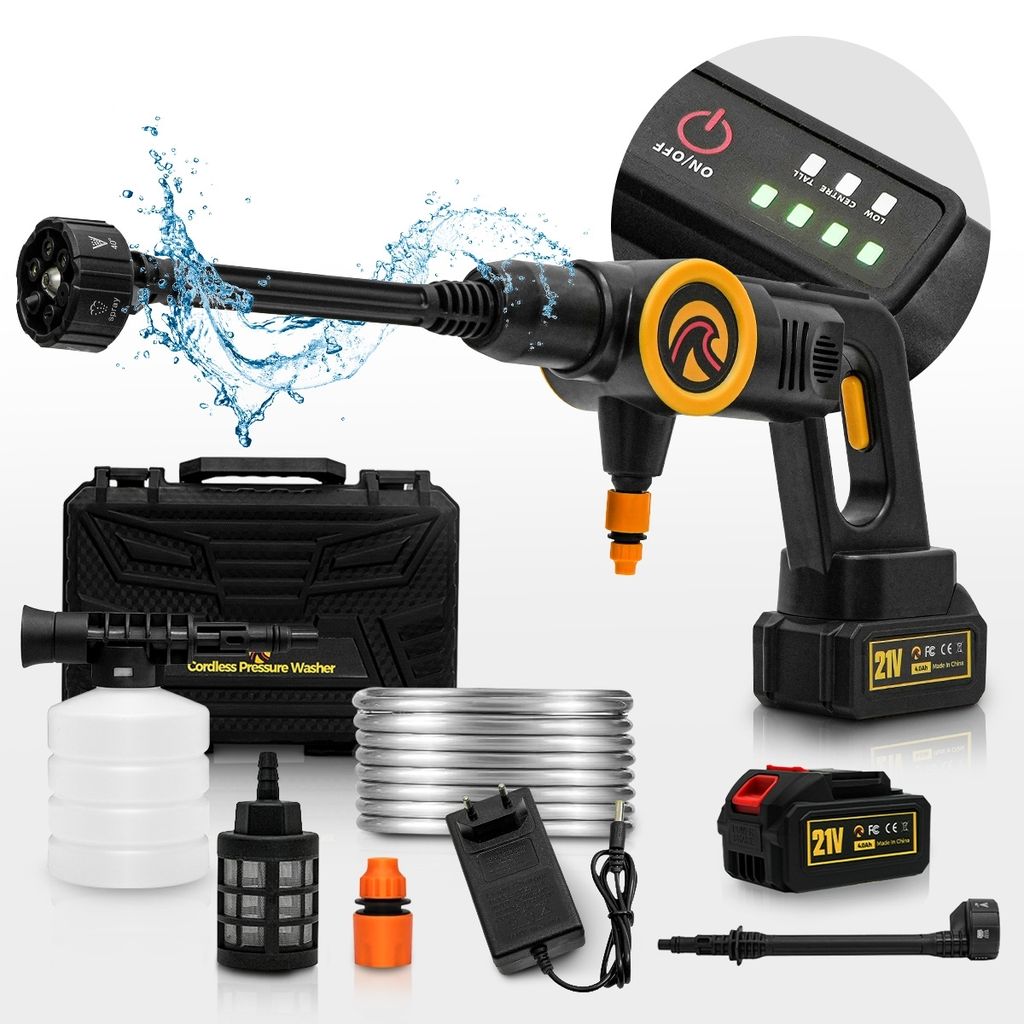 Kabelloser Hochdruckreiniger 21V 60 Bar - Mit 2 Akkus Für Auto & Garten