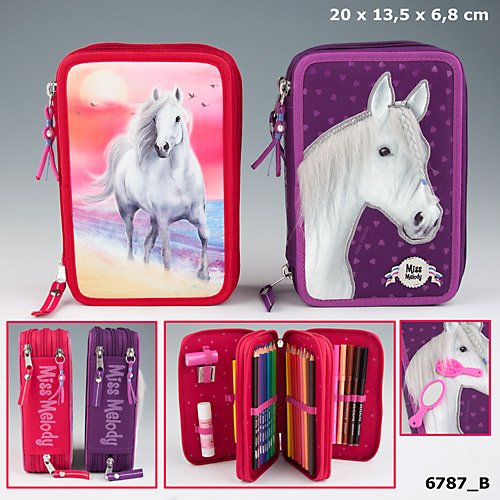 Coole Federtasche Mit Pferdemotiv - 22-teiliges Set In Grau Für Schulkinder