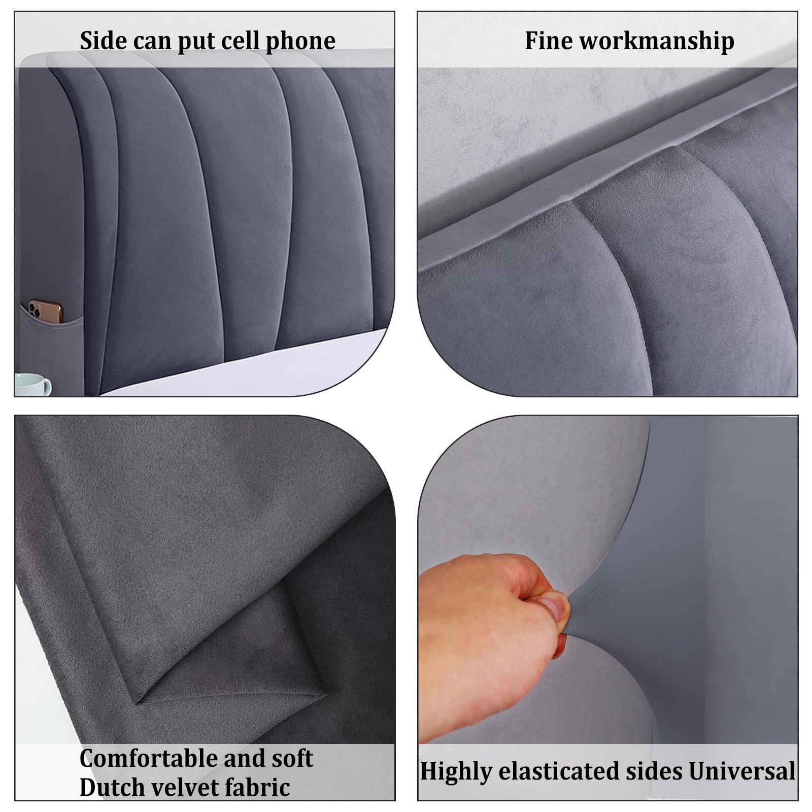 Kopfteilbezug 220cm Dunkelgrau - Stretch Bezug Für Bettkopfteiler Waschbar