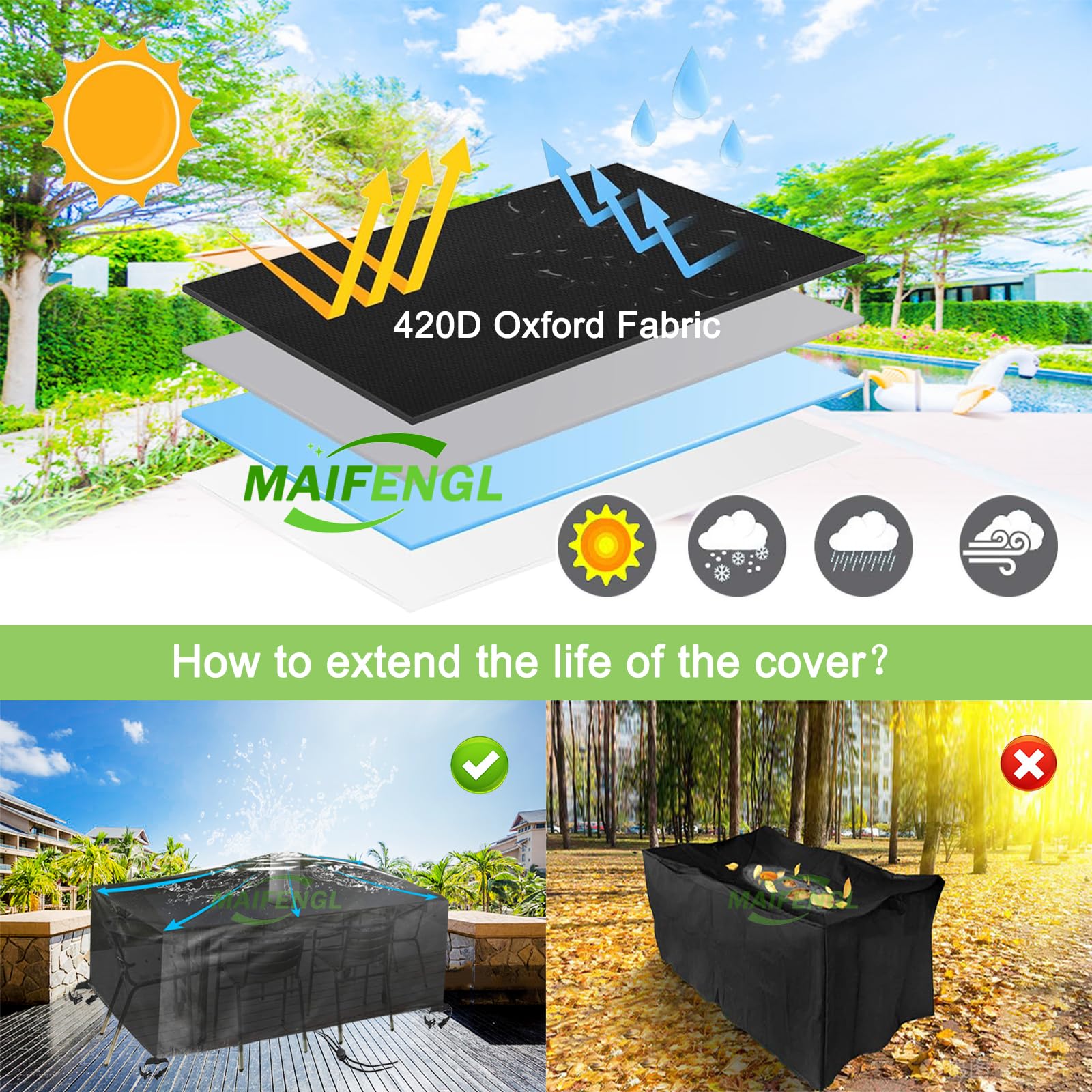 YMPPMKN Gartenmöbelabdeckung 220x80x80cm - Wasserdicht & UV-beständig