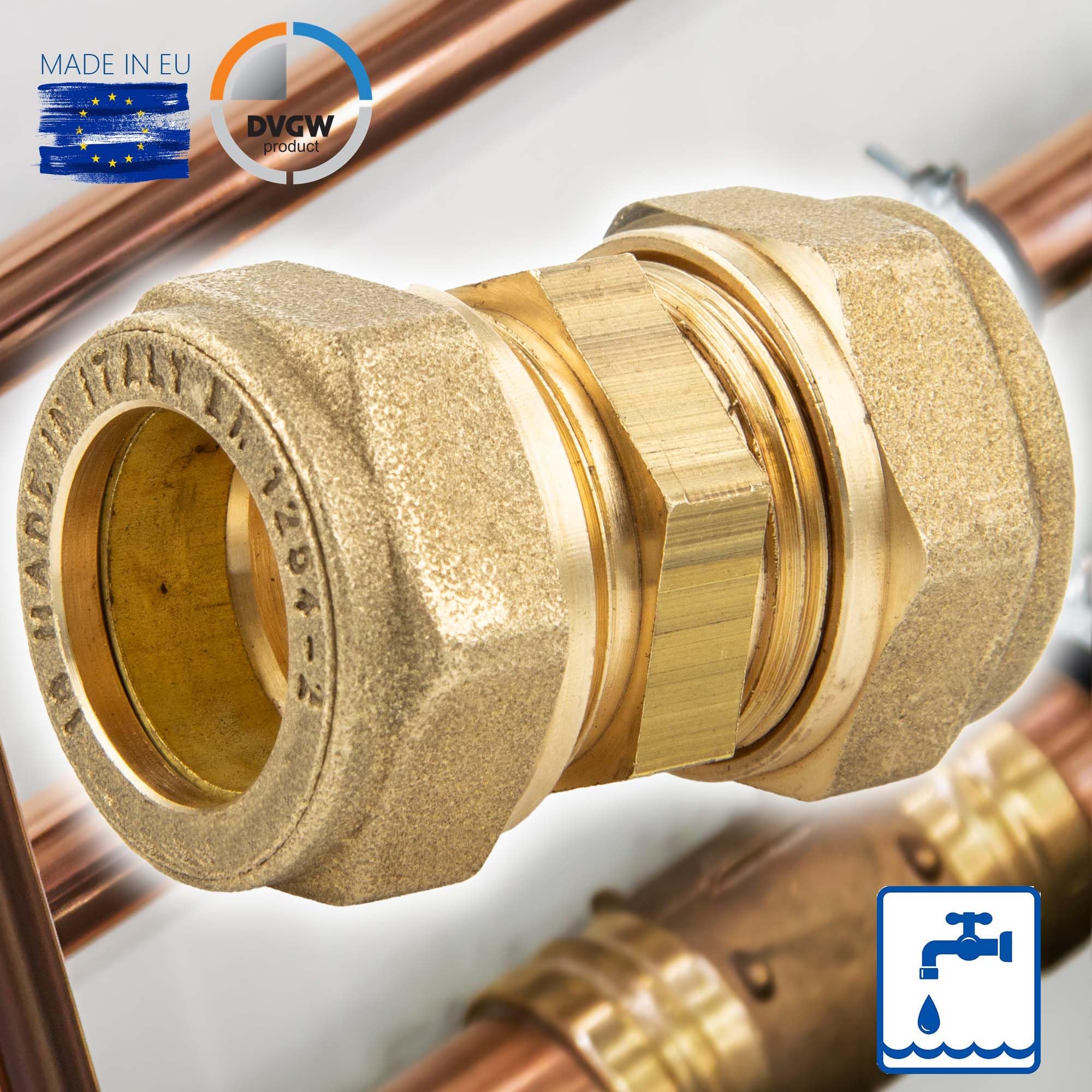 Tecuro Klemmringverbinder 22x22mm Messing - Gerade Verschraubung Für Trinkwasser & Heizung