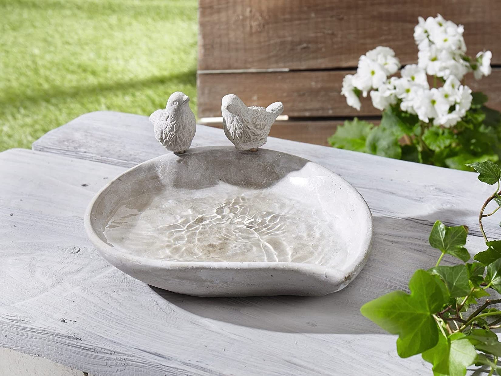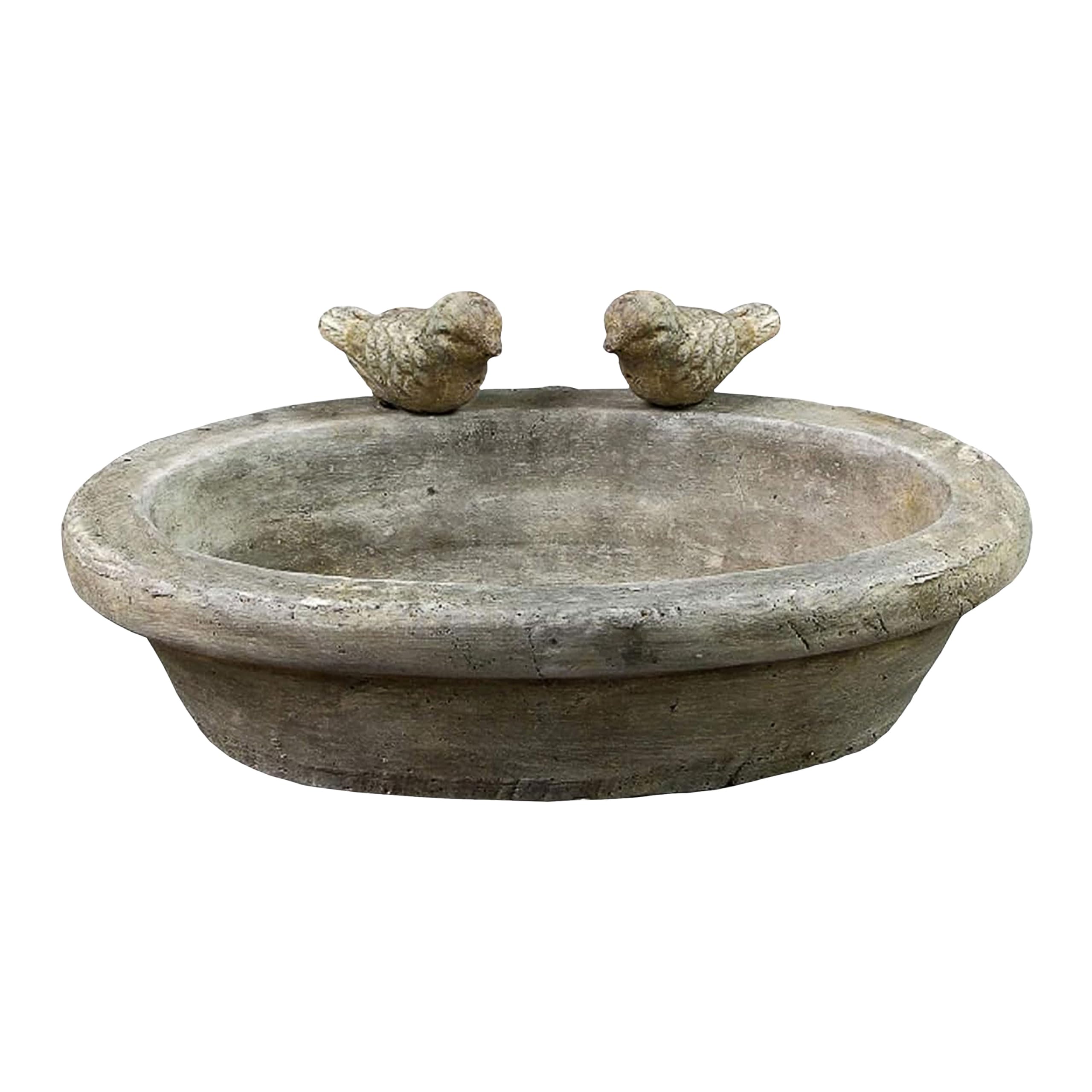 MucHome Vogeltränke Aus Beton - 23,5cm Vogelbad Mit 2 Vögeln Für Garten & Terrasse