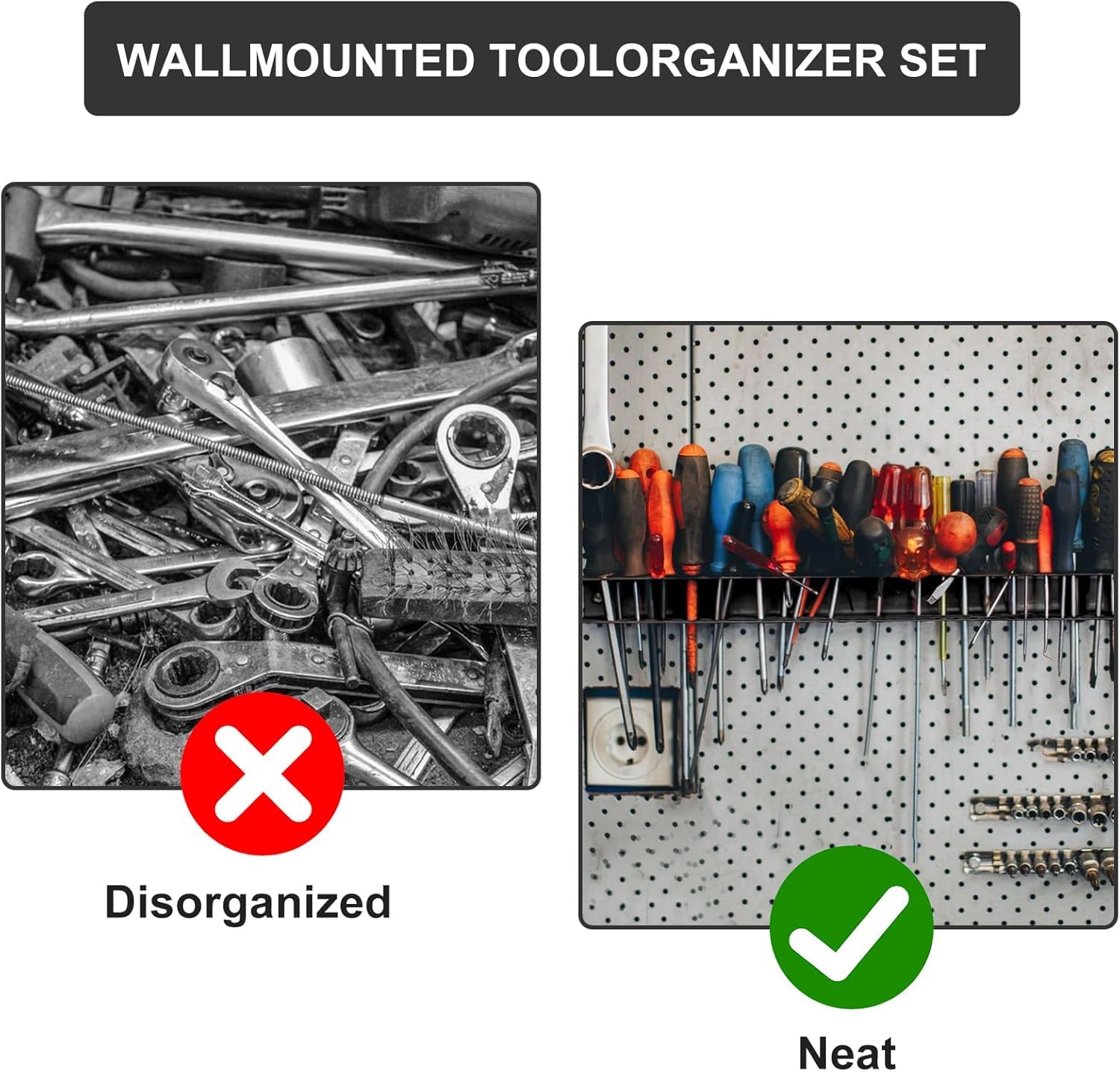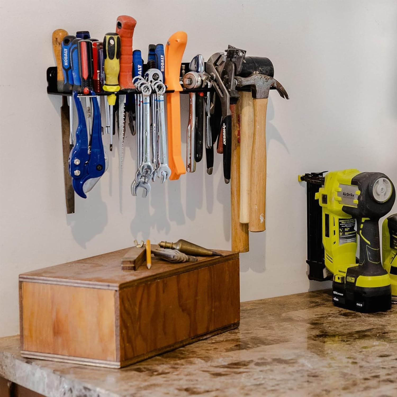 Schluss mit dem Suchen in der Werkzeugkiste! Dieser clevere Wandhalter bringt Ordnung in deine Schraubenzieher und Zangen. Mit 23 Löchern für dein komplettes Werkzeug-Sortiment. Aus robustem Kohlenstoffstahl - rostfrei und extrem langlebig. Maße von 4x5x32cm - kompakt, aber mega praktisch. Einfache Montage mit den beiliegenden Schrauben und Expansionsrohren - markieren, bohren, festziehen, fertig! Deine Werkzeuge sind immer griffbereit und übersichtlich sortiert. Maximiert den vertikalen Platz an der Wand - perfekt für volle Garagen oder Werkstätten. Nie wieder fällt dir eine Zange auf die Füße! Passt in Wohnräume, Büros, sogar in LKWs und Wohnmobile. Spart unglaublich viel Platz und sieht dabei noch ordentlich aus. Endlich siehst du auf einen Blick, welches Werkzeug du wo hast. Ob Profi oder Heimwerker - diese Organisation macht jedes Projekt einfacher. Deine Werkbank wird nie wieder unordentlich sein! Einfach die Werkzeuge einhängen und sich über den aufgeräumten Arbeitsbereich freuen. So macht Werkeln richtig Spaß!