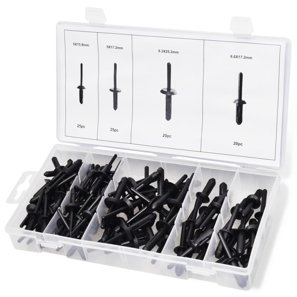 Das komplette Blindnieten-Set für alle Heimwerker-Projekte! Enthalten sind 235 Teile in verschiedenen Größen: 55x M3,2x8mm, 45x M3,2x13mm, 35x M4x10mm, 30x M5x20mm, 35x M5x12mm und 35x M4x13mm. Jeder Niet besteht aus einem Aluminium-Körper und einem Stahl-Dorn - rostfrei, korrosionsbeständig und super stabil. Die praktische Aufbewahrungsbox mit transparentem Deckel hilft dir, immer schnell die richtige Größe zu finden. Die Nieten haben ein breites Kantendesign für maximale Haltekraft und verhindern so ein Lösen der Verbindung. Einfach mit einer Blindnietzange anwenden: Dorn herausziehen, Rundkopf in den Niet einführen und aufweiten - schon ist die Verbindung bombenfest! Perfekt für Metall, Holz, Kunststoff, Leder und viele andere Materialien. Ob im Modellbau, für Möbel, Auto, Boot oder Haushalt - dieses Set hat für jede Anwendung die passende Niete. Alles griffbereit in einer Box - so macht Heimwerken Spaß!